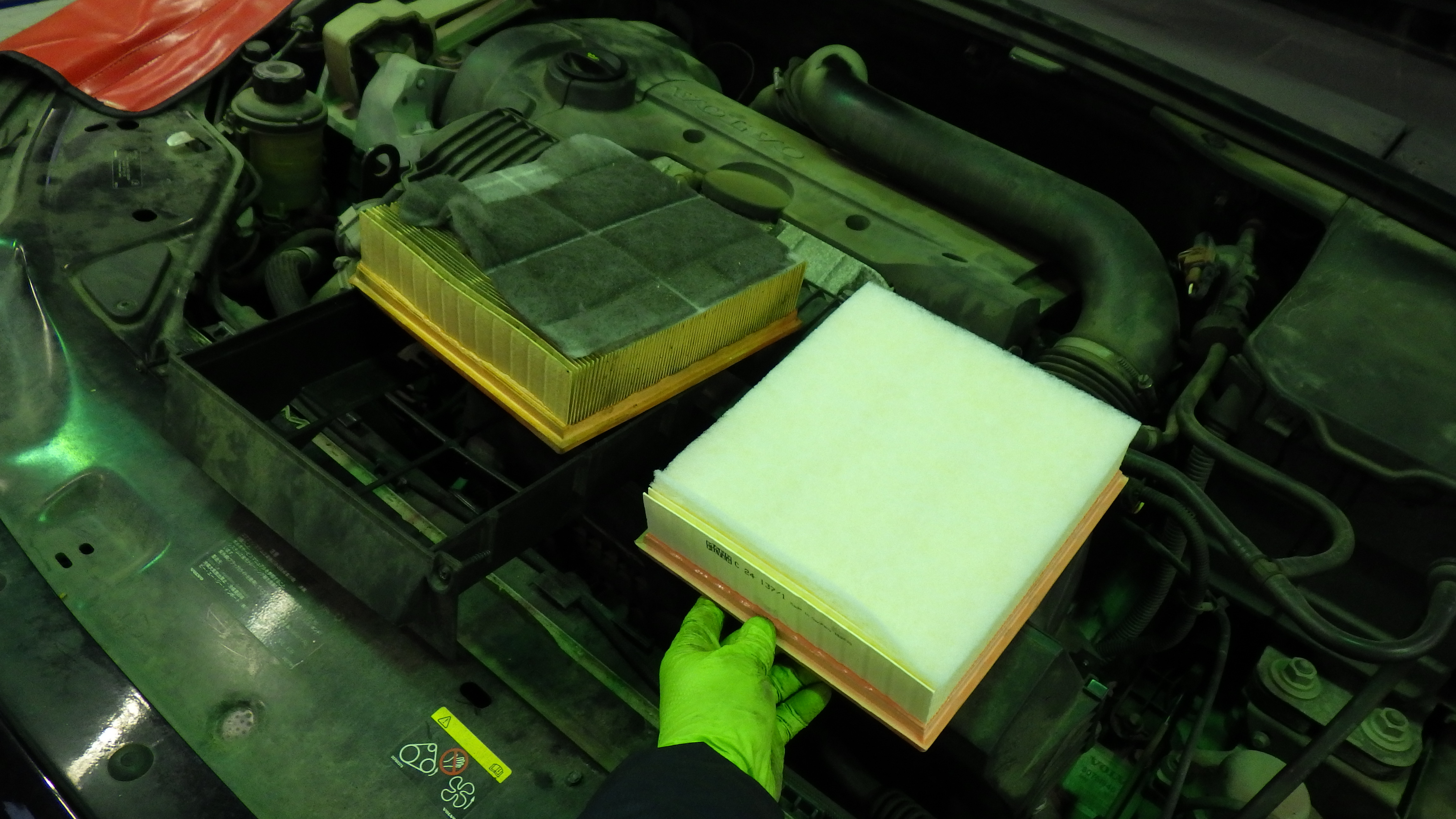 エンジンのエアクリーナーもご覧の通り汚れがひどい状態でしたので、交換させていただきました。