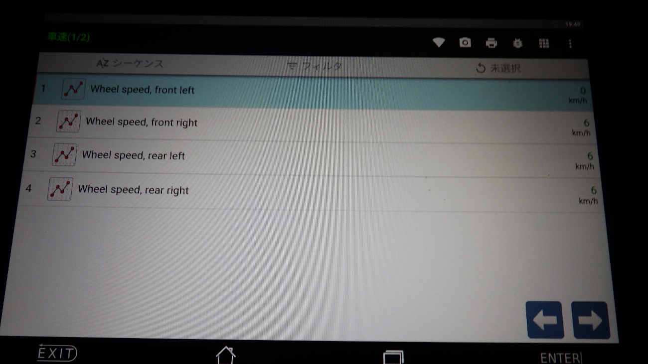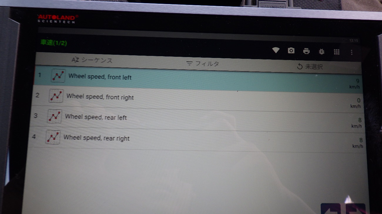 4輪車速を診断したところ、右フロントだけ反応がありませんでした。