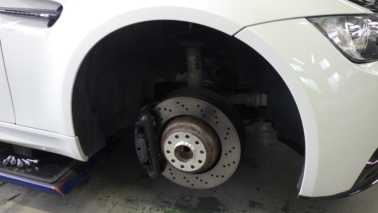 右フロントのタイヤを取り外した状態になります。