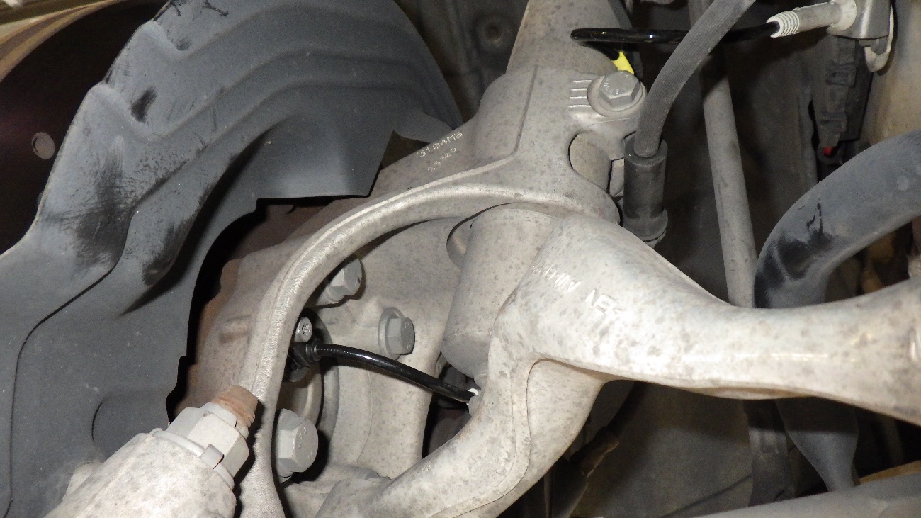 左フロントのABSセンサーの交換作業の様子になります。