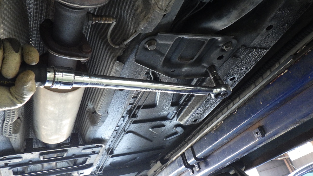 サブフレーム組付け後、こちらも規定トルクで締め付けております。