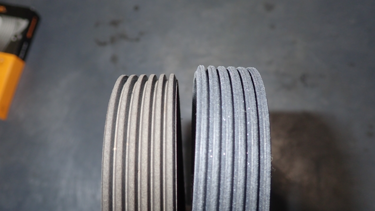 ベルトが痩せ、細かな亀裂が発生していましたので交換実施しています。