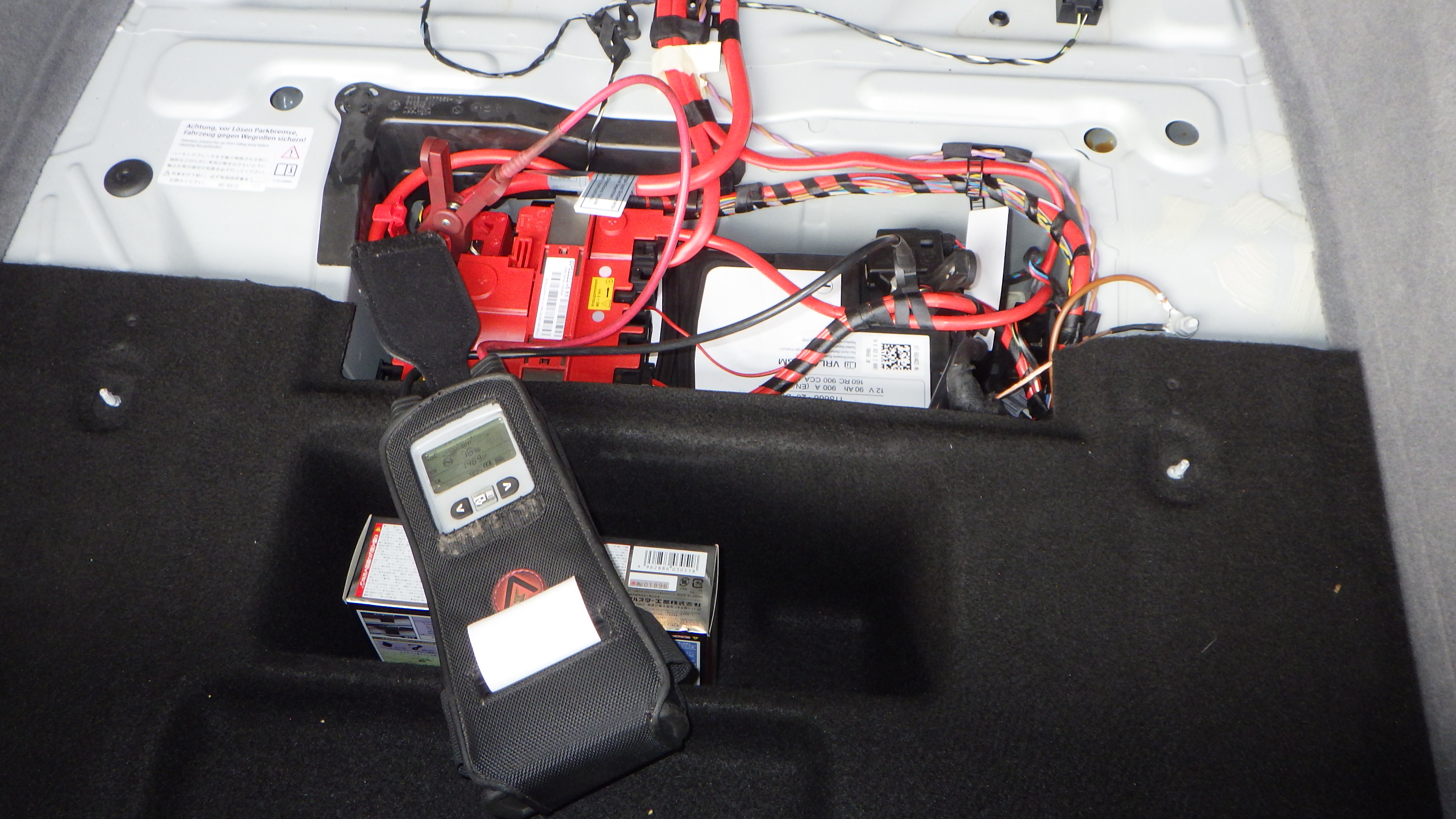 テスターにてバッテリーの点検を実施しています。