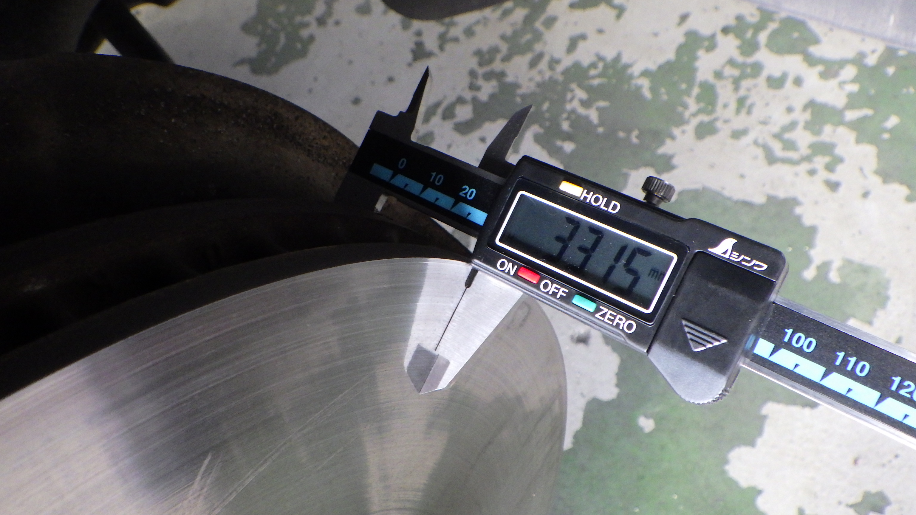 リヤブレーキパッド残量は約5.0mmです。