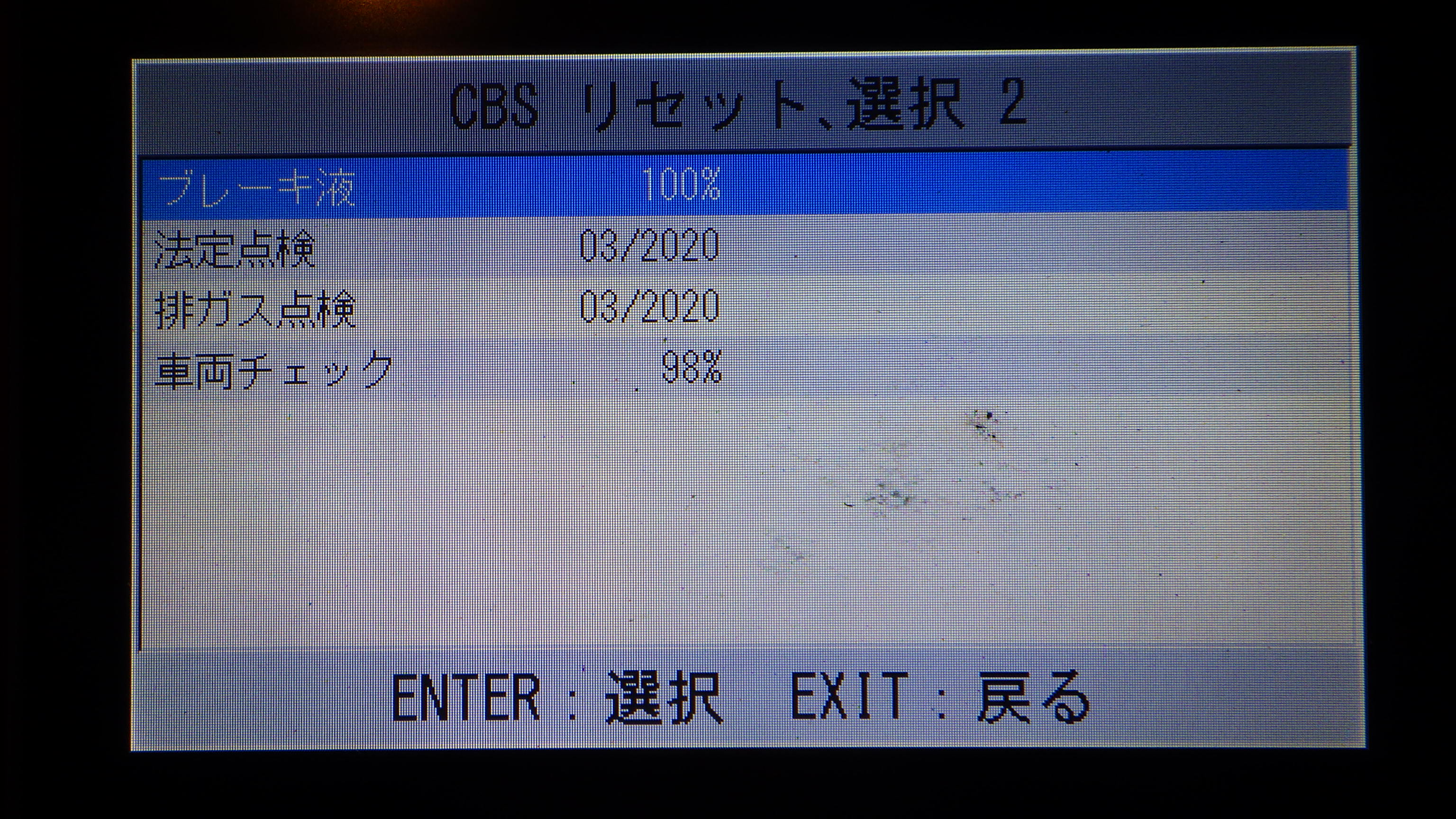 テスターにて故障コードの確認と、サービスのリセットを実施しています。