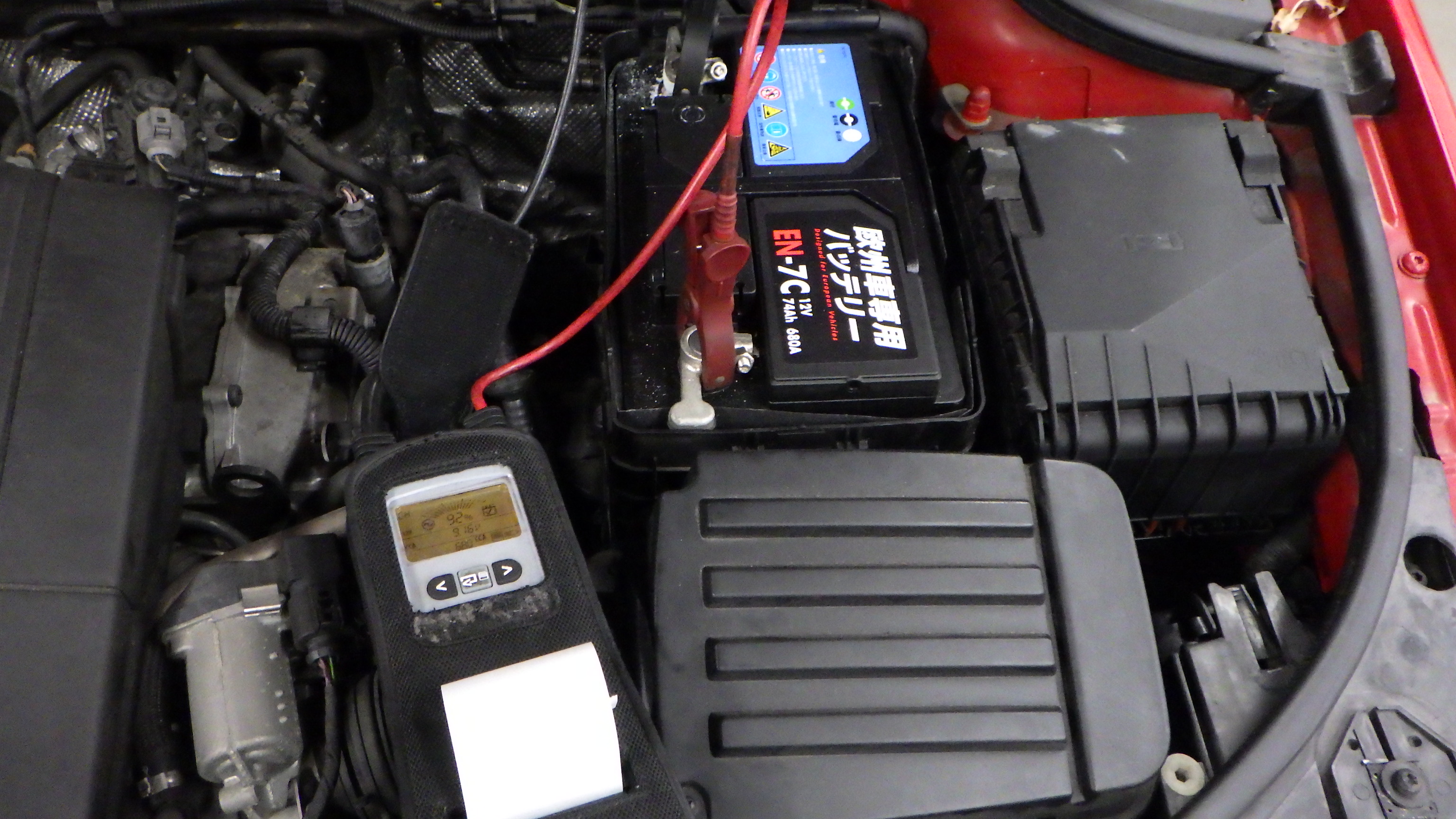 テスターにて故障コードの確認と、サービスのリセットを実施しています。