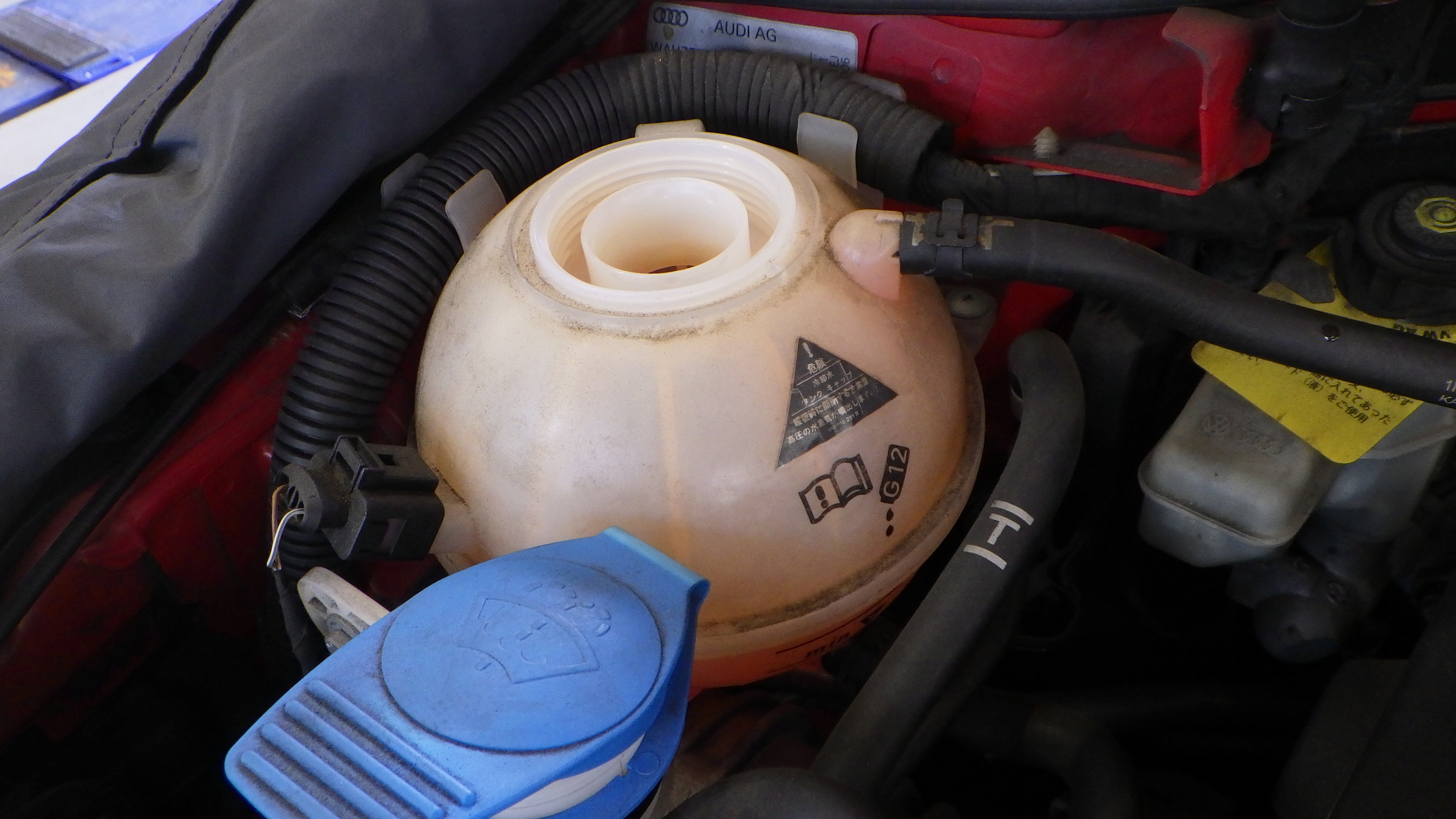 エンジン冷却水です。クーラント量、状態、各部漏れ等点検実施しています。