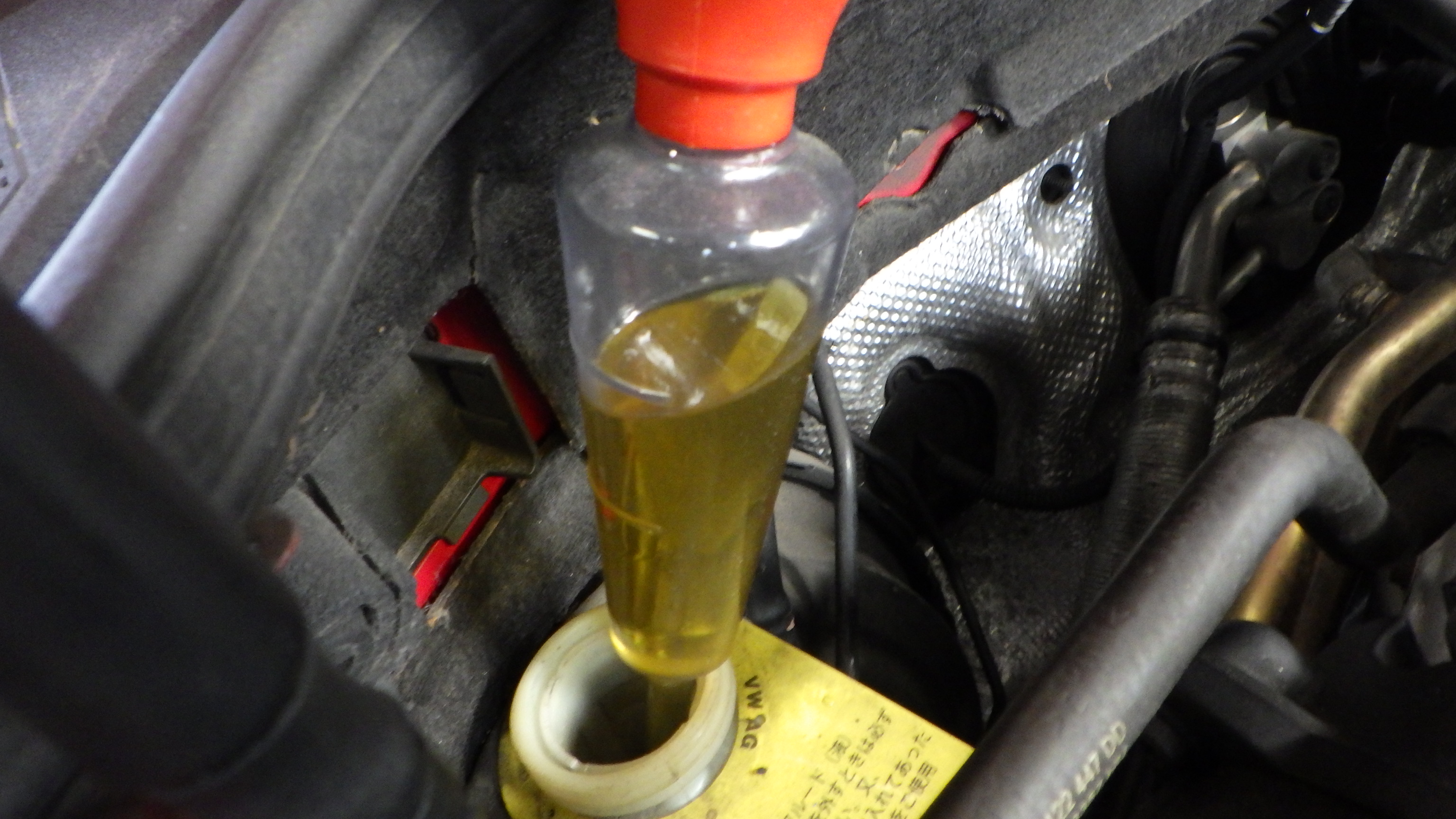 交換前、交換後のオイルです。交換後オイル量の点検も実施しています。