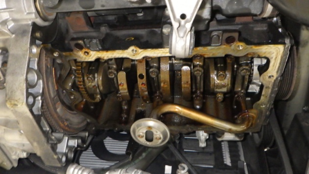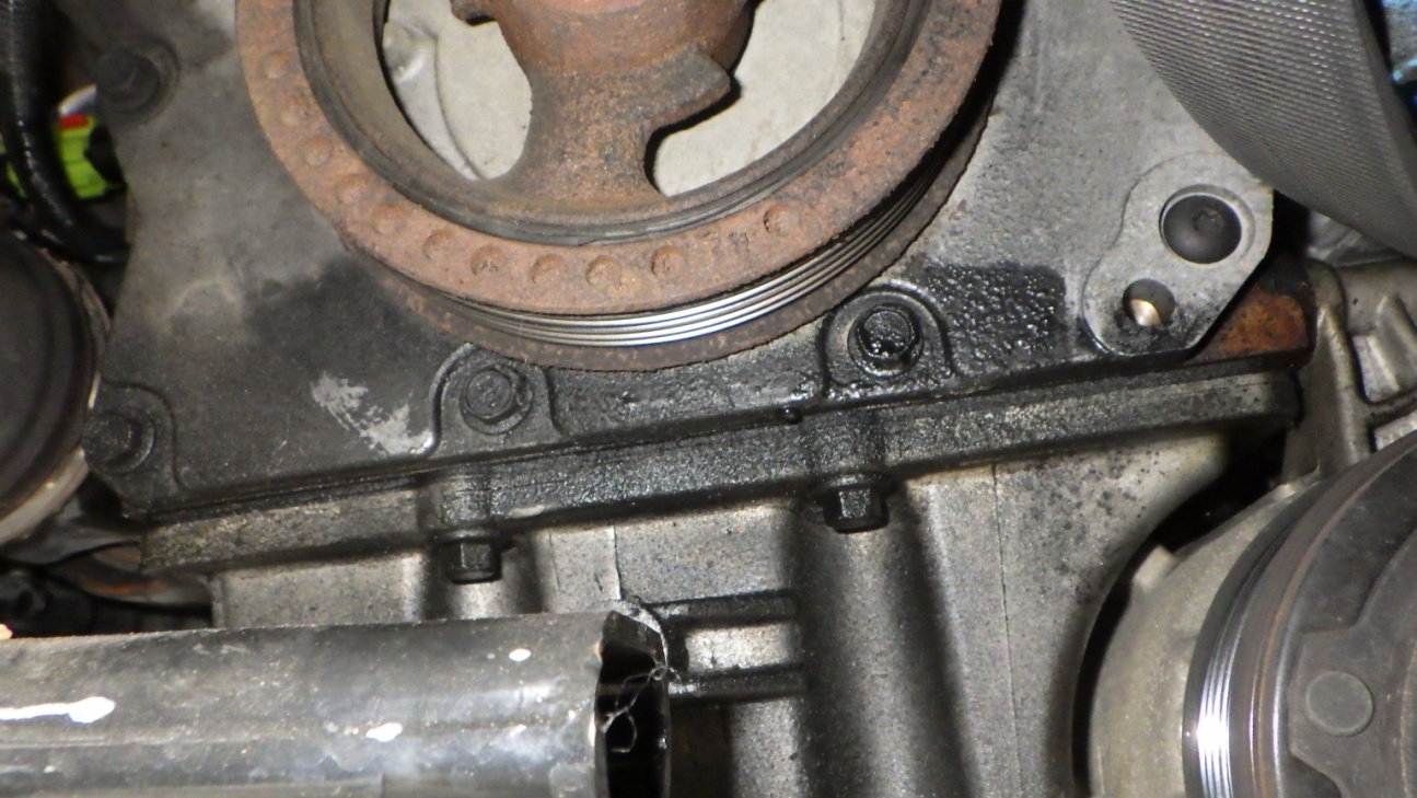 クランクケースとオイルパンの間にオイルが漏れていました。