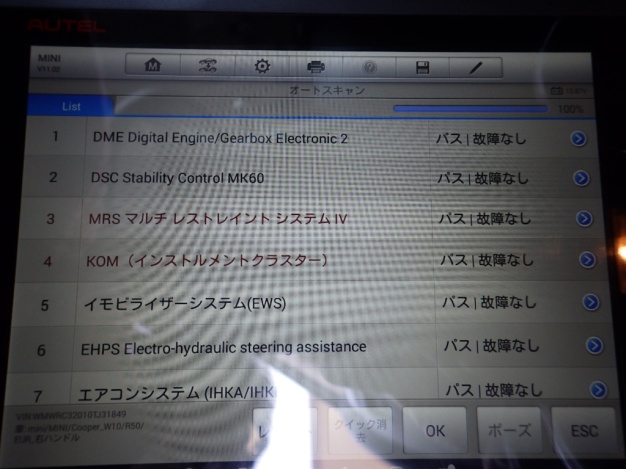 テスターにて各制御系統の診断を行いましたが異常ありませんでした。