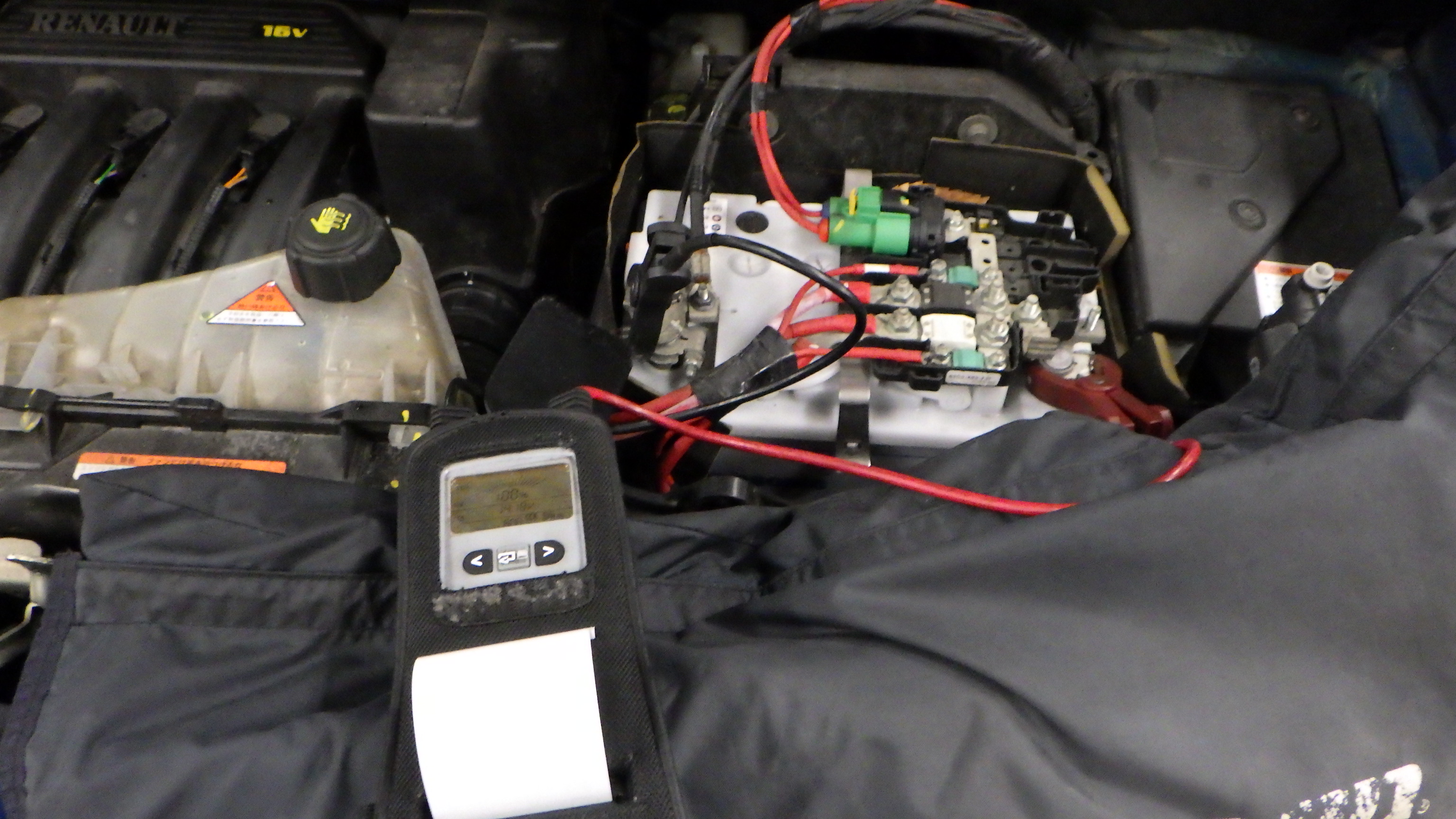 テスターにてバッテリーの点検を実施しています。