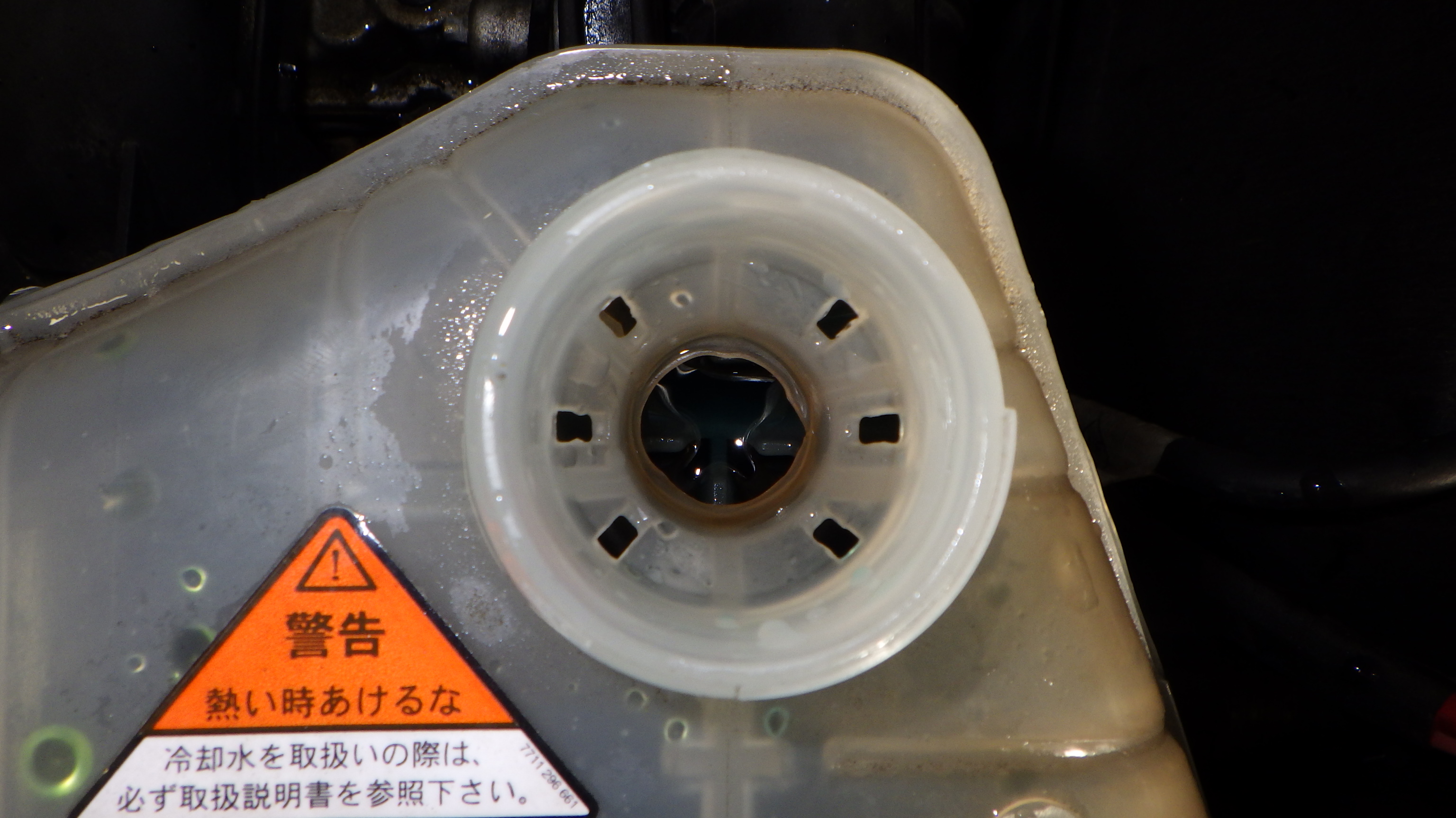 エンジン冷却水です。クーラント量、状態、各部漏れ等点検実施しています。