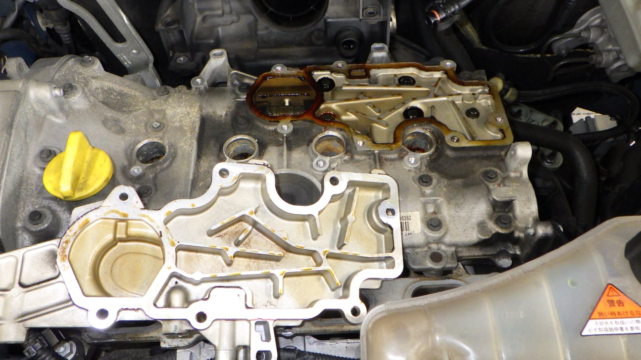 エンジンオイルの漏れ、にじみが発生していました。