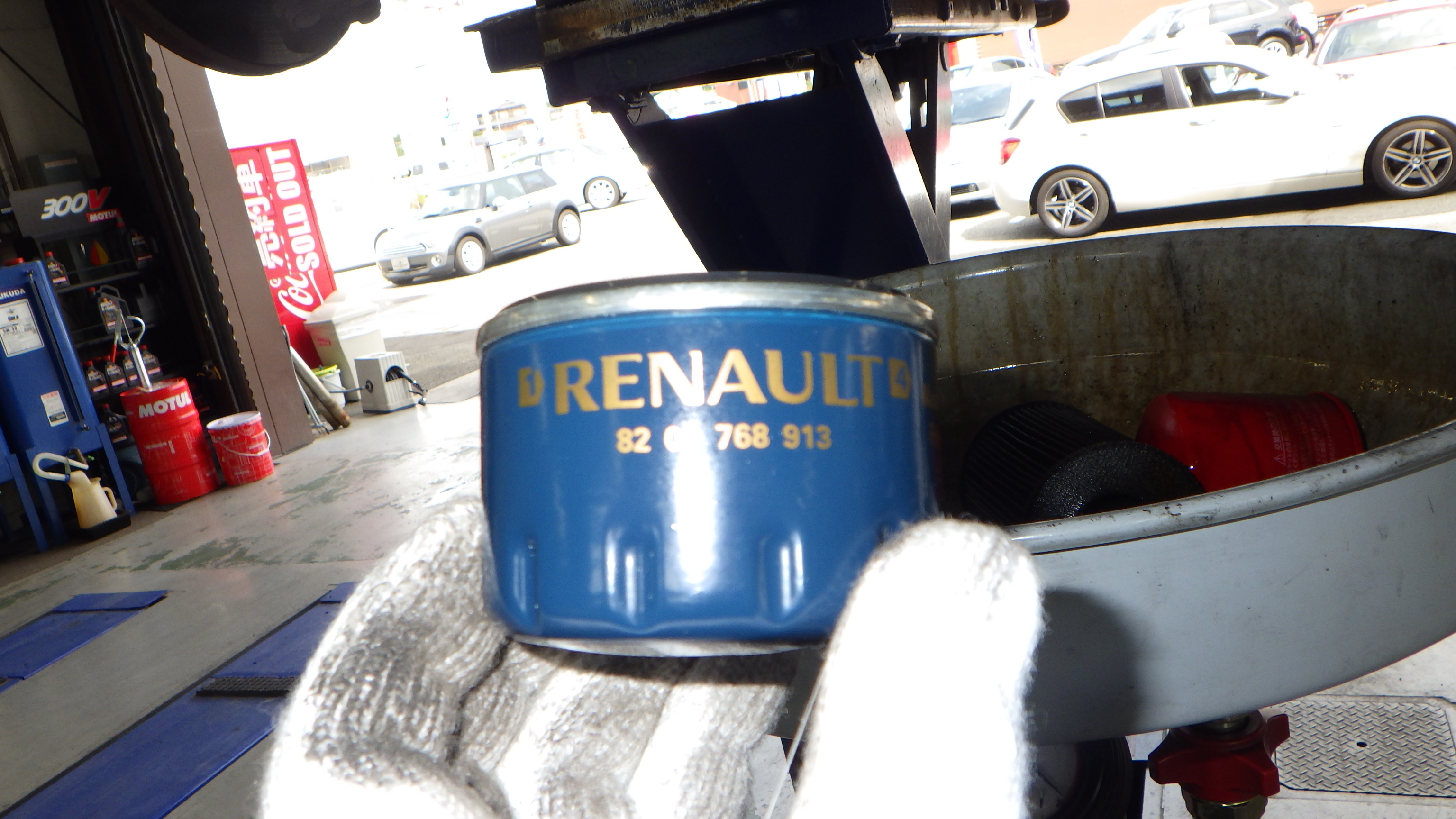 交換前、交換後のオイルです。交換後オイル量の点検も実施しています。