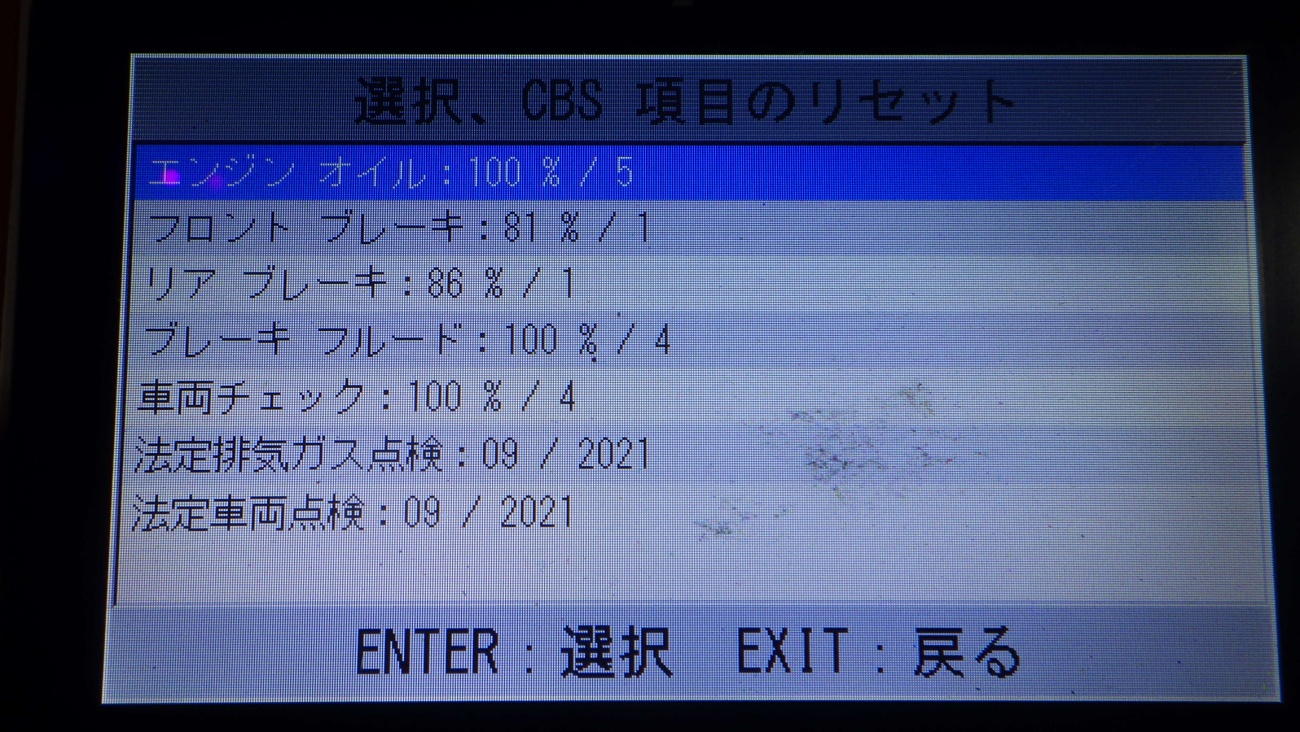 テスターにて故障コードの確認と、サービスのリセットを実施しています。