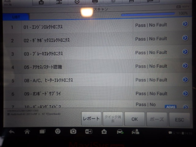 テスターにて各制御系統の診断を行いましたが異常ありませんでした。