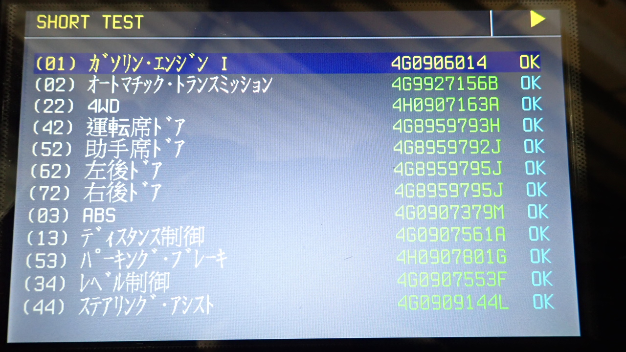 テスターにて故障コードの確認と、サービスのリセットを実施しています。