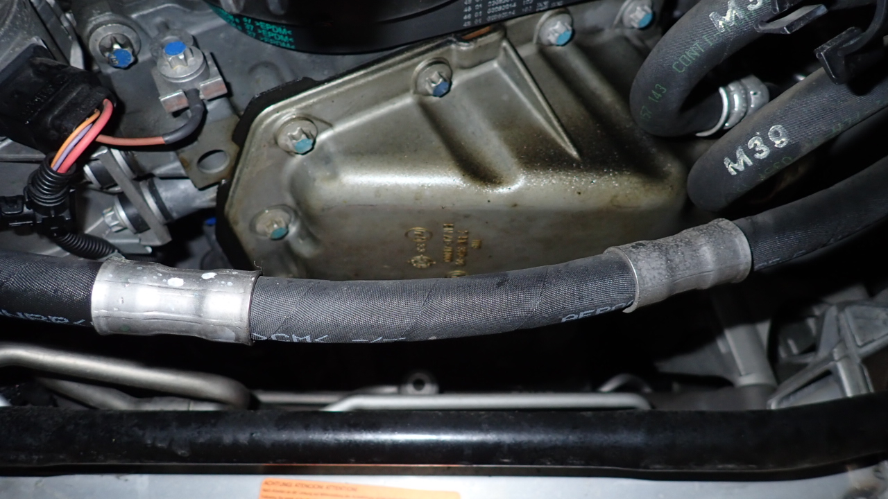 エンジンオイルパンよりオイルの漏れ、にじみが発生しています。