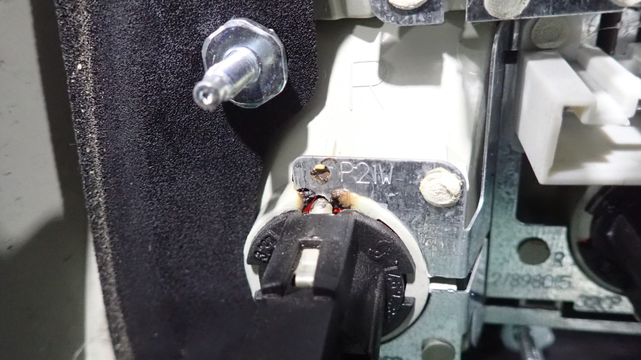 端子部分が焼けて接触不良を起こし、点灯していませんでした。
