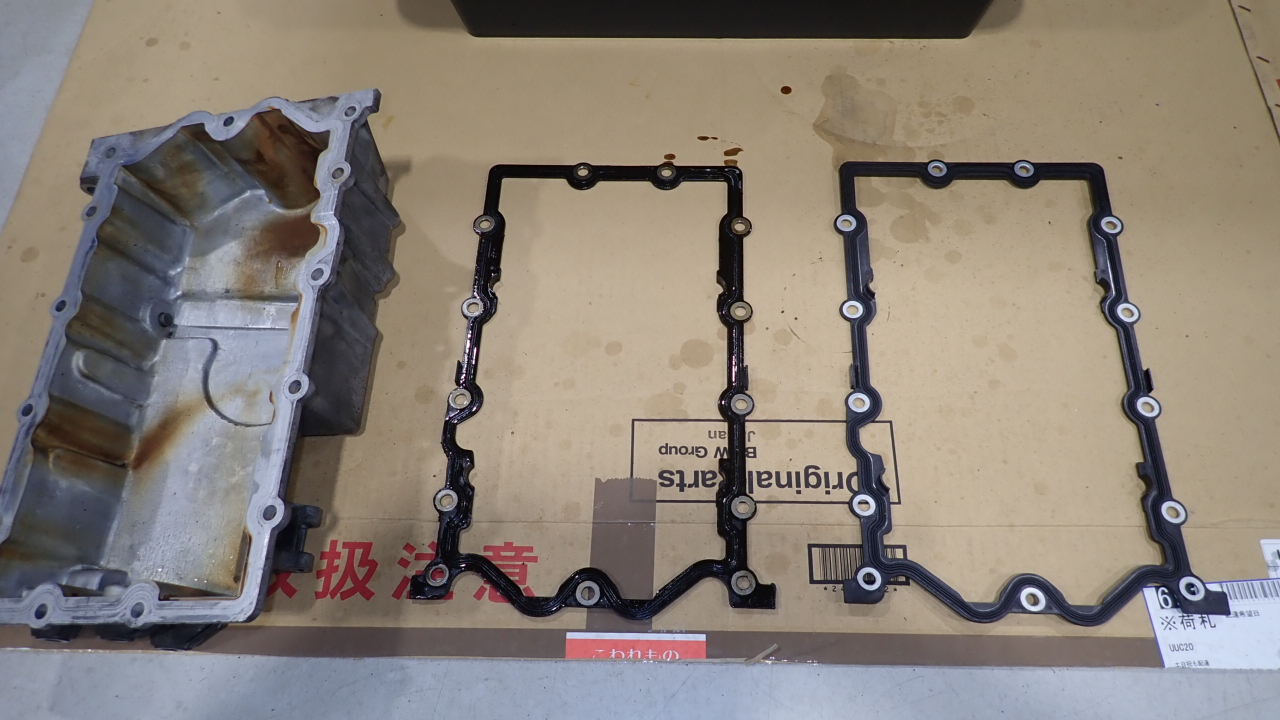 エンジンオイルパンガスケットが劣化し漏れが発生していました。