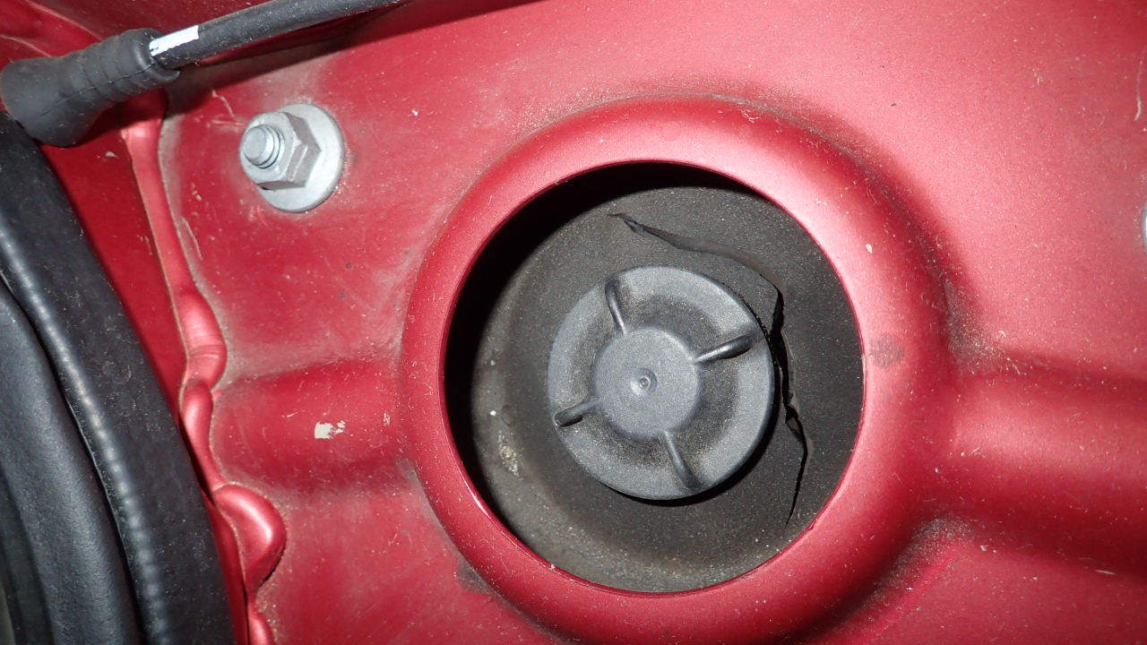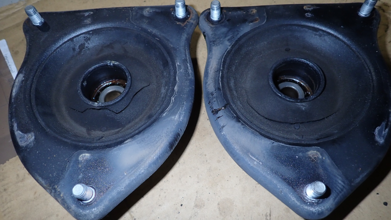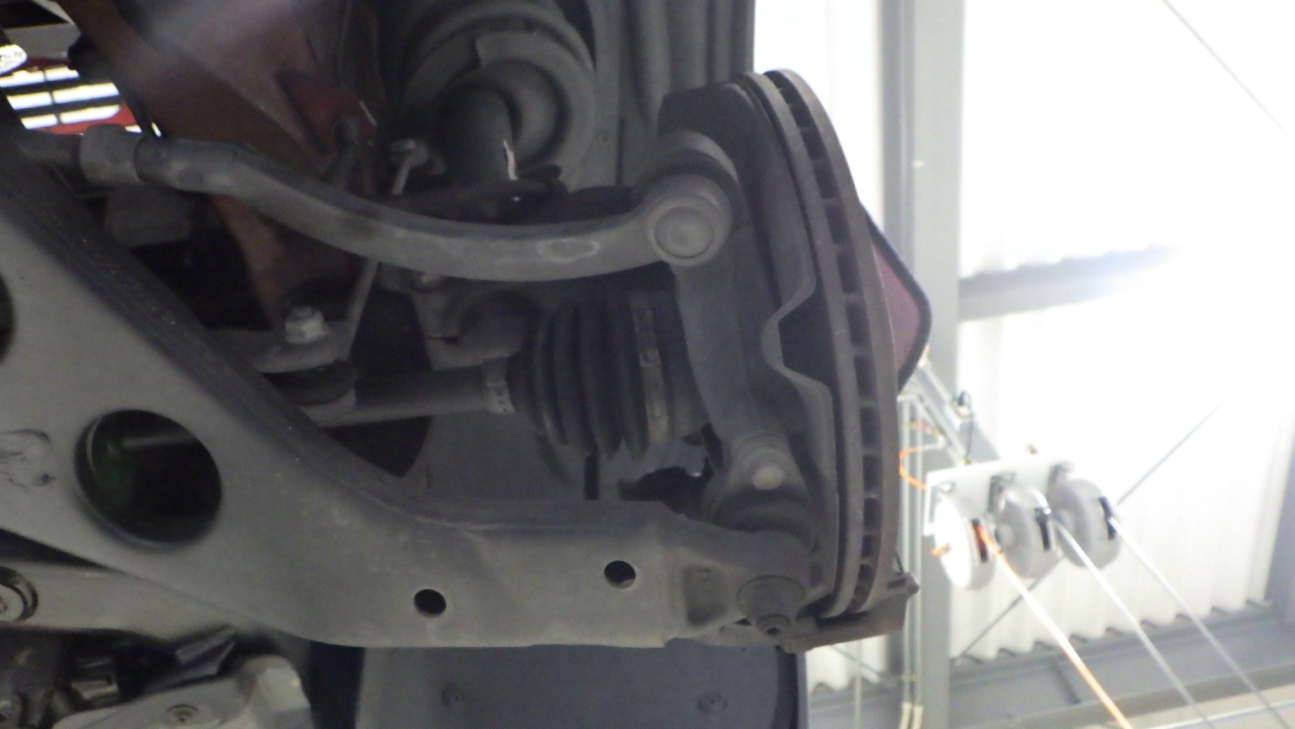 フロントサスペンションアッパーブッシュに劣化による亀裂が発生していました。
