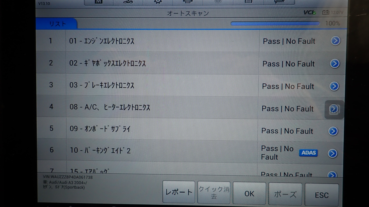 テスターにて故障コードの確認と、サービスのリセットを実施しています。