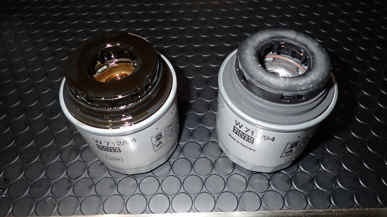 交換前、交換後のオイルです。ドレンボルト、パッキンも交換実施しています。