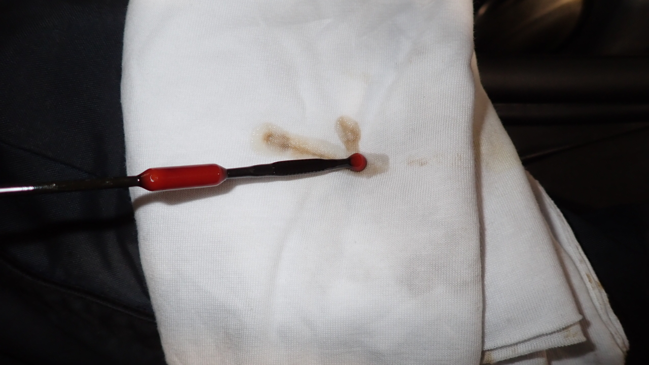 交換前、後のオイルです。 交換後オイル量の点検も実施しています。