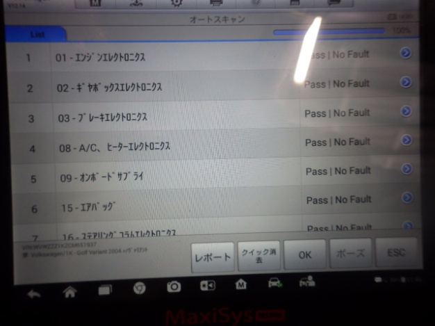 テスターにて各制御系統の診断を行いましたが異常ありませんでした。