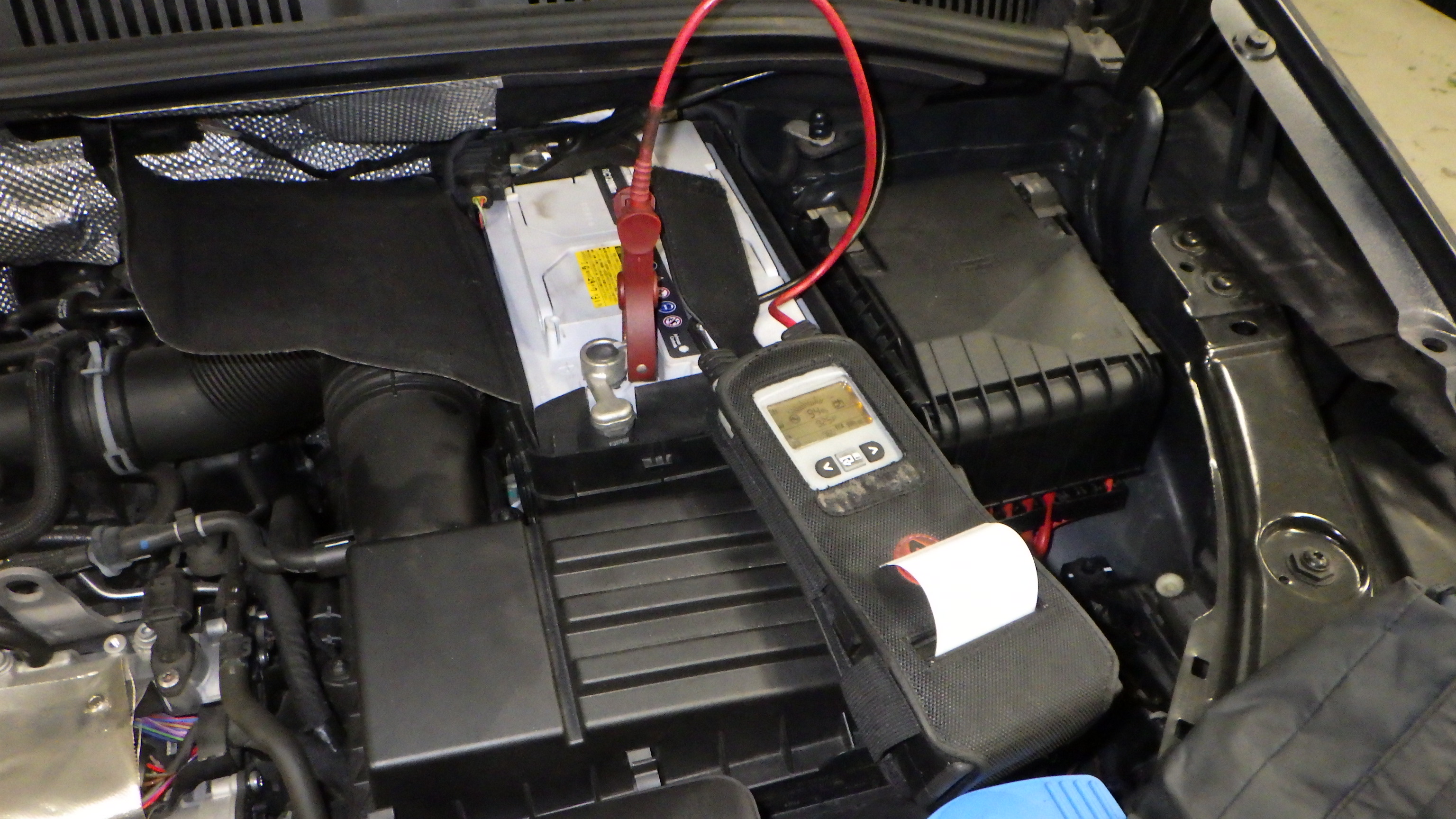 テスターにてバッテリーの点検を実施しています。