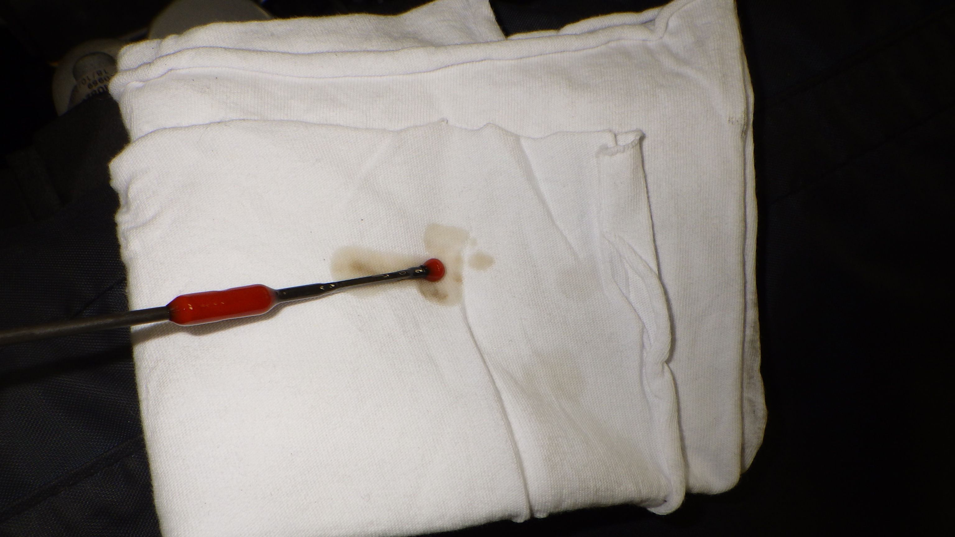 交換前、交換後のオイルです。交換後オイル量の点検も実施しています。