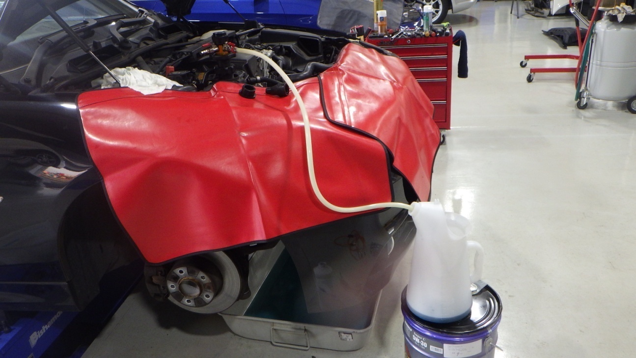 交換前、交換後のエンジンオイルです。オイル量の点検も実施しています。