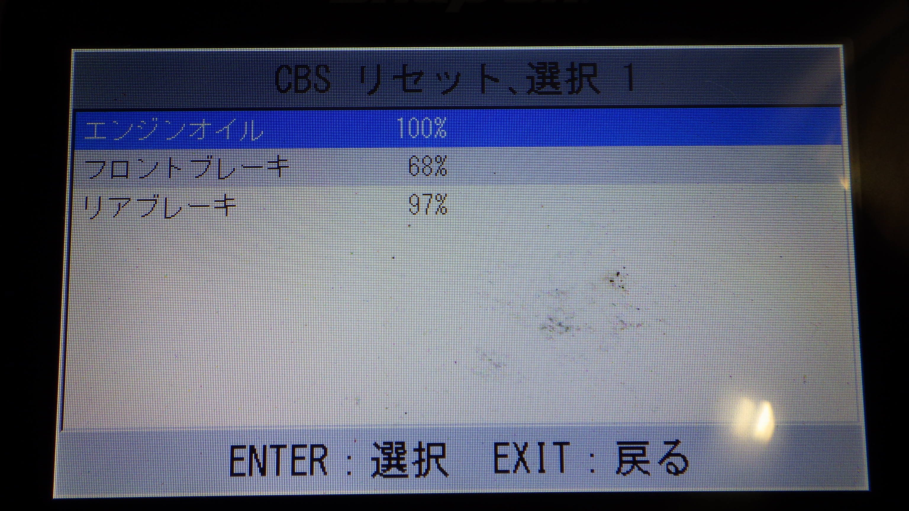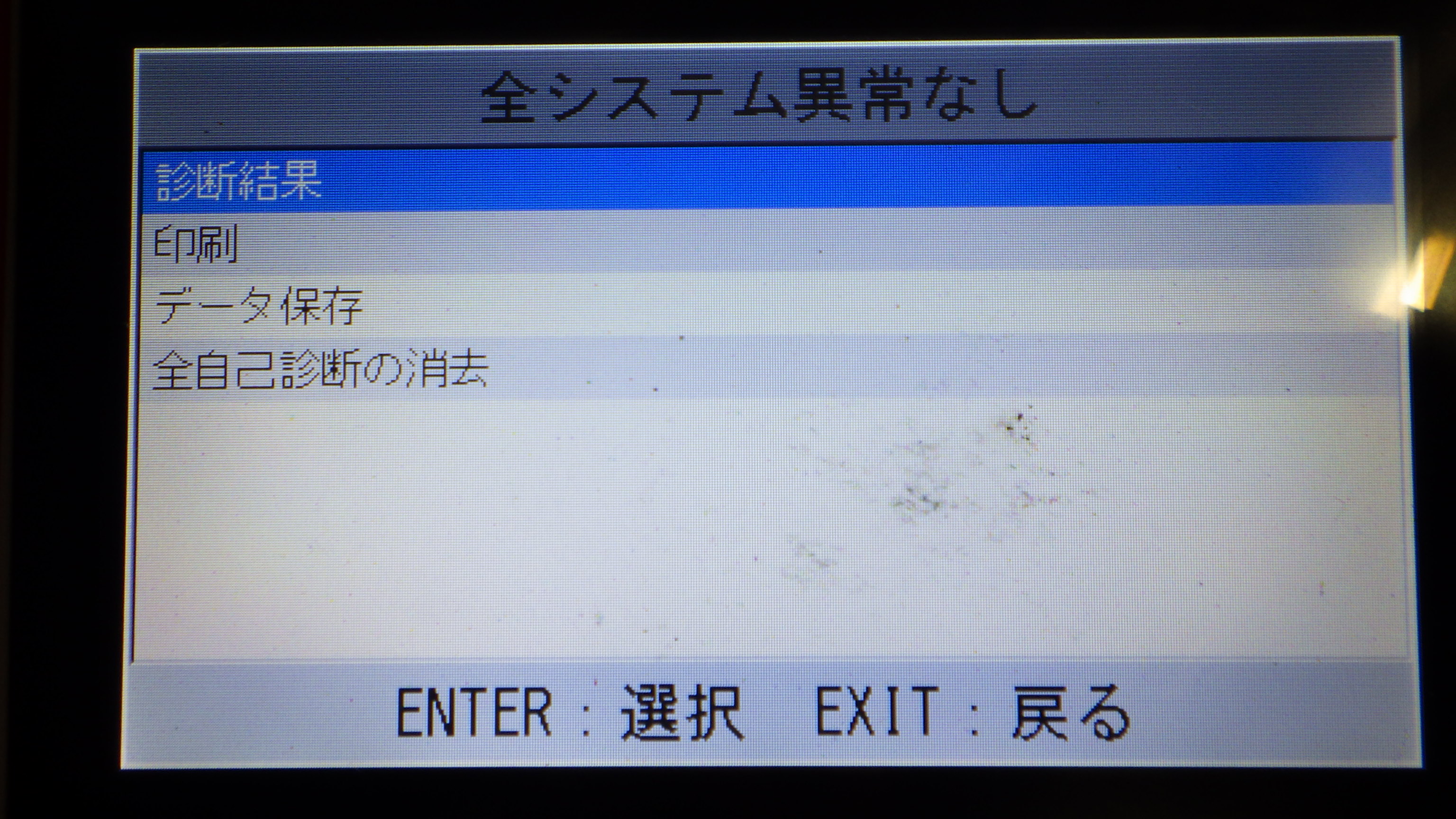 テスターにて故障コードの確認と、サービスのリセットを実施しています。