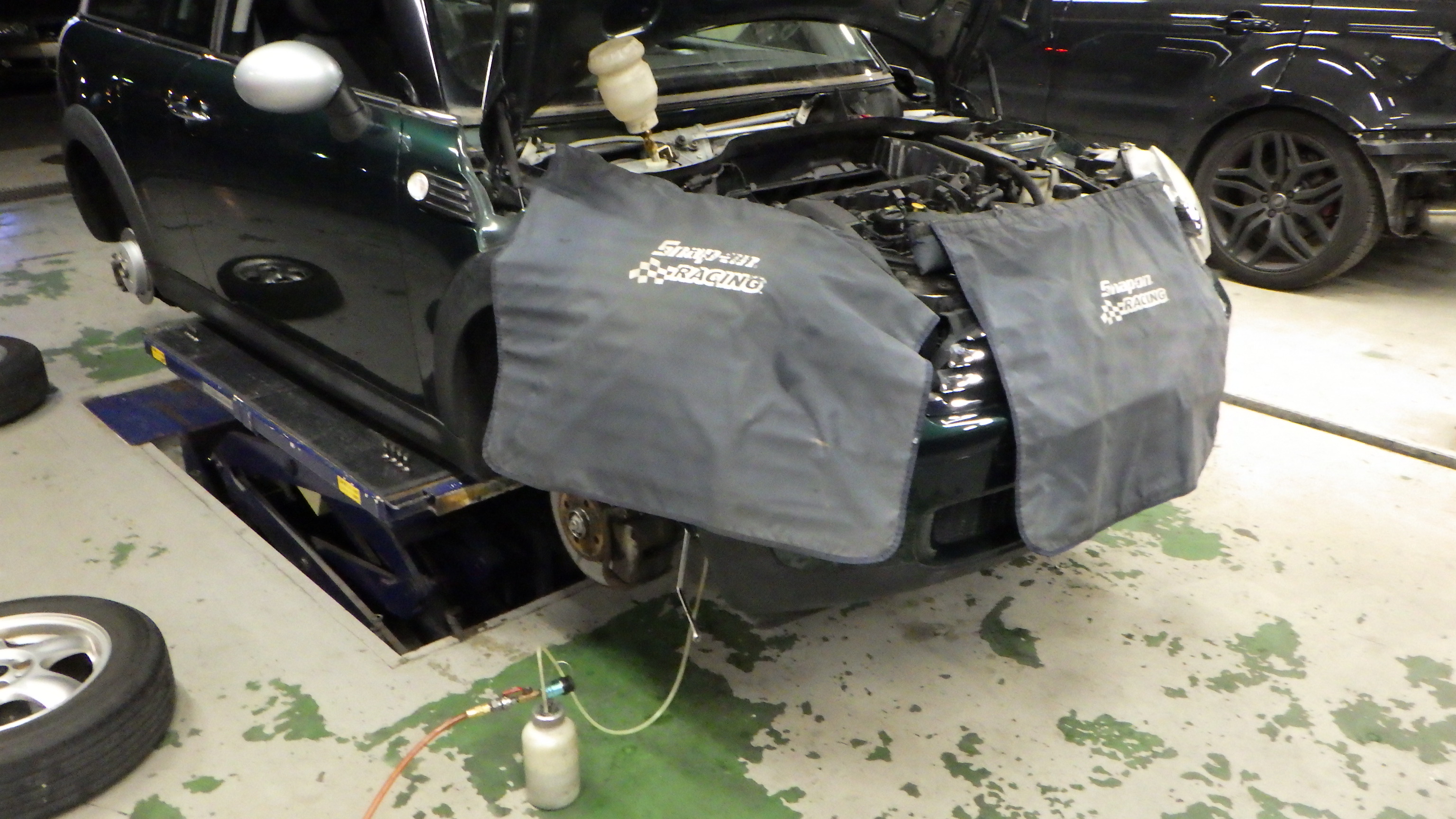 I様 BMWミニ オイル、LLC漏れ修理レポート 75256 km この度はご入庫ありがとうございます。 エンジンオイル、クーラント漏れの修理作業に取り掛かって…