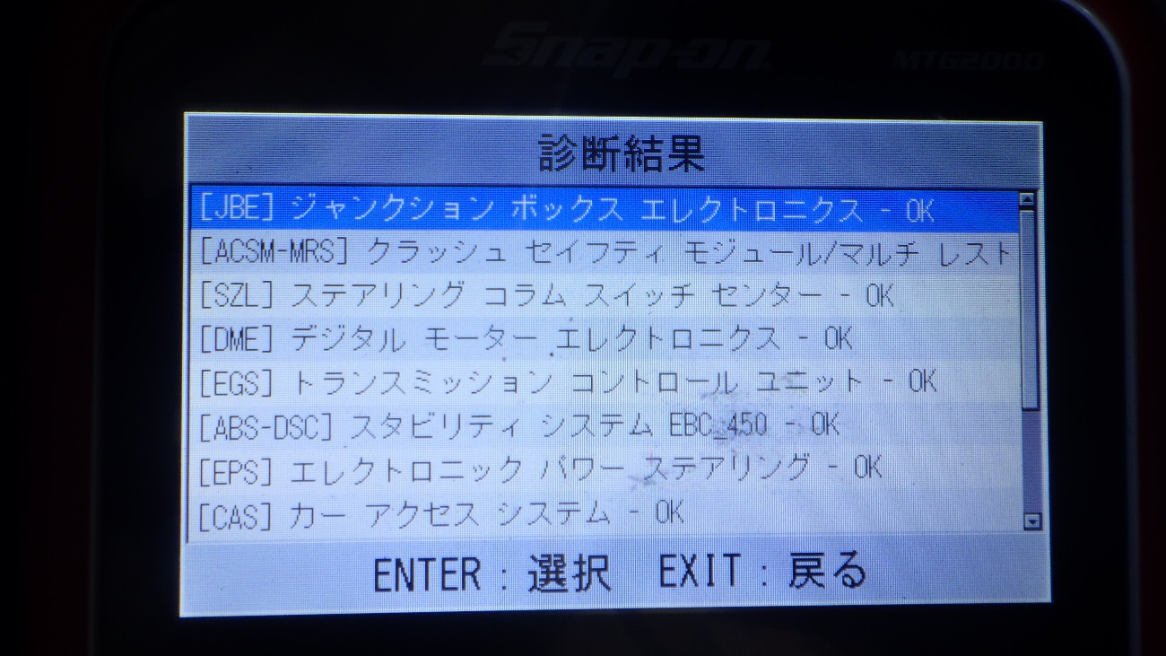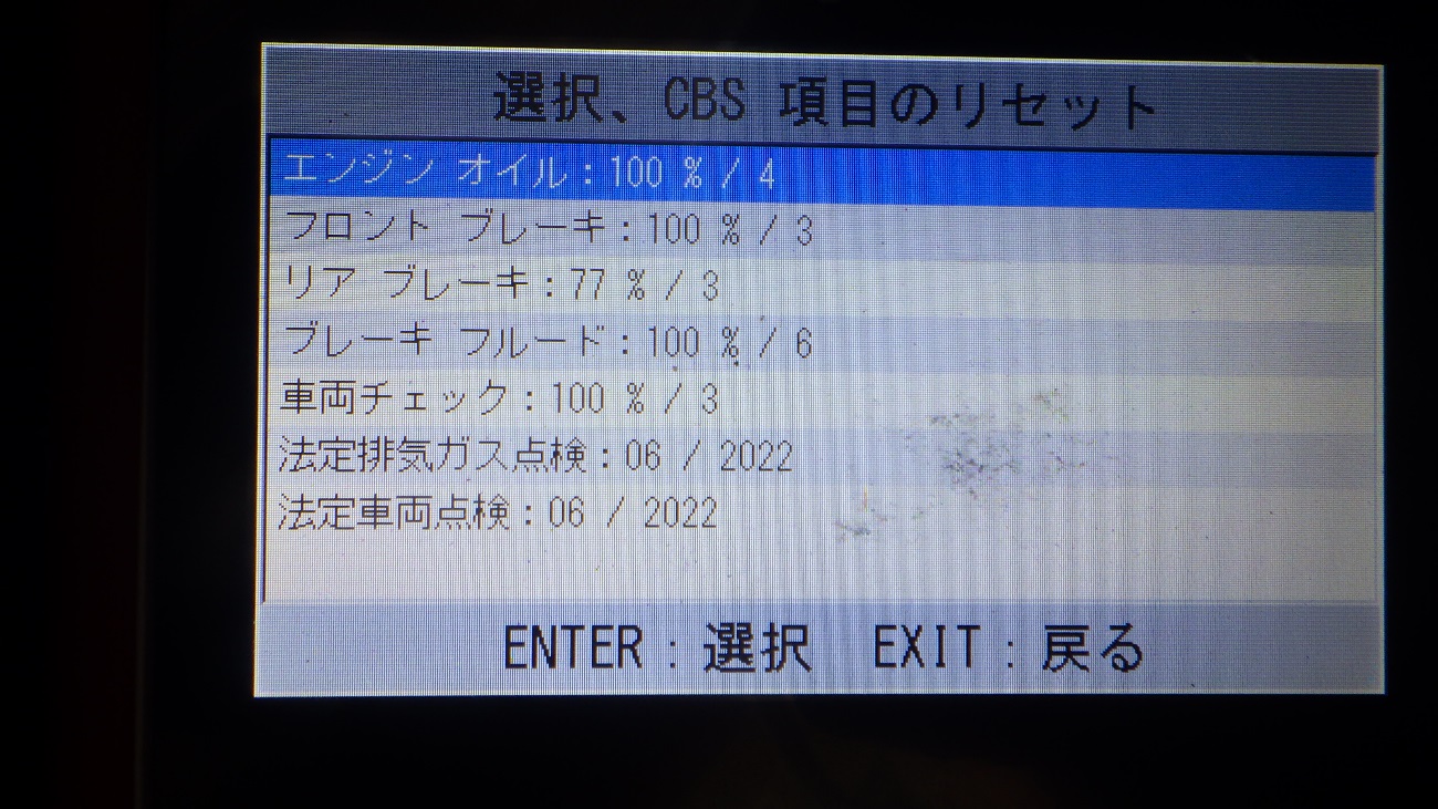 テスターにて故障コードの確認と、サービスのリセットを実施しています。