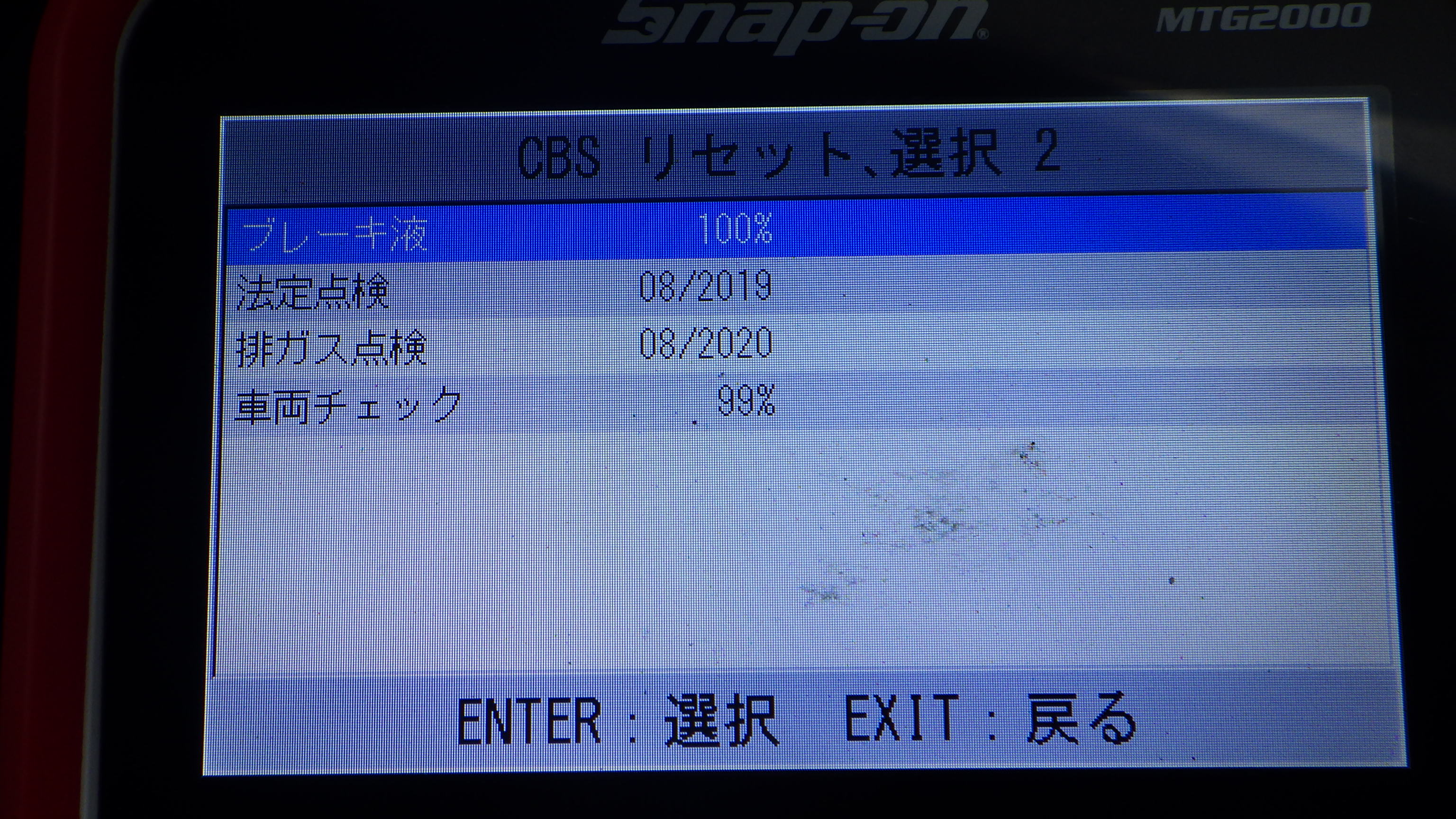 テスターにて故障コードの確認と、サービスのリセットを実施しています。