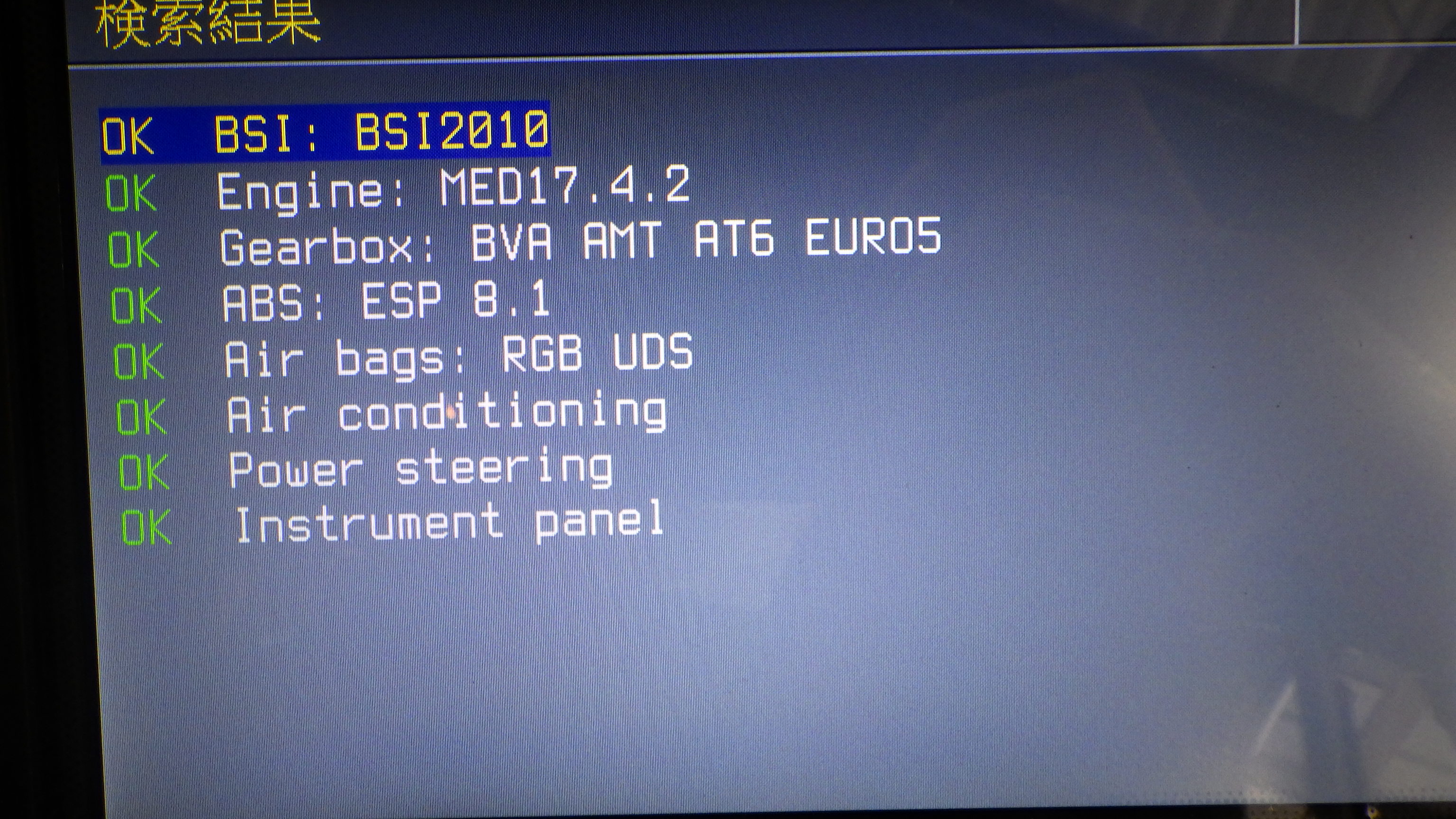 テスターにて故障コードの確認と、サービスのリセットを実施しています。