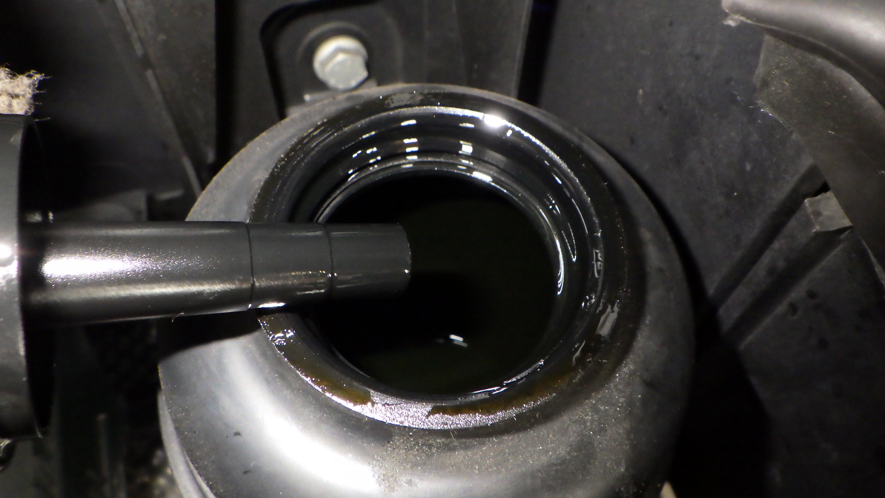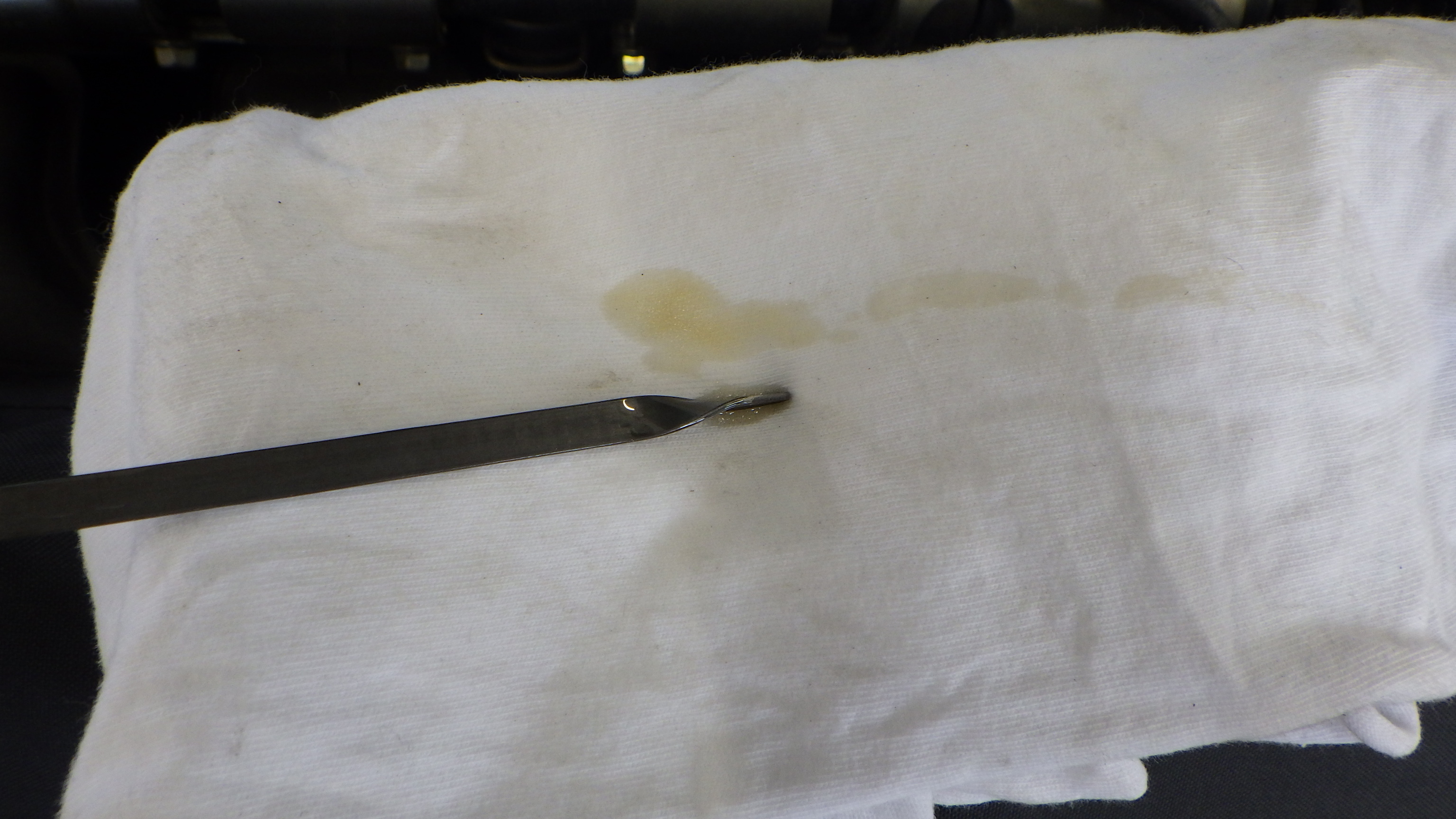 交換前、交換後のオイルです。交換後オイル量の点検も実施しています。