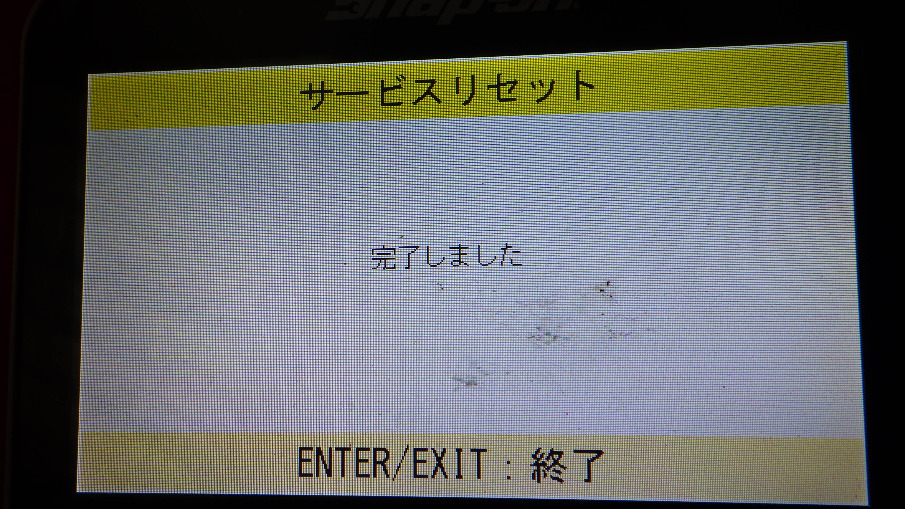 テスターにて故障コードの確認と、サービスのリセットを実施しています。