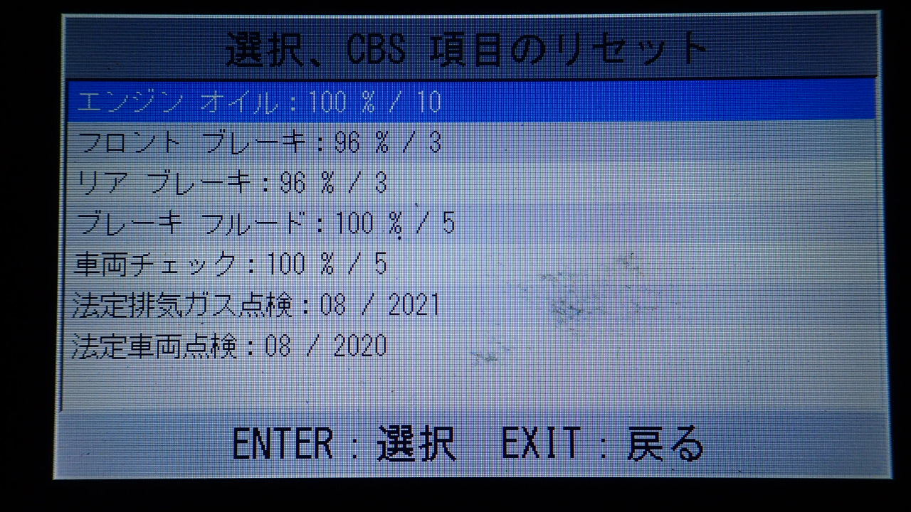 テスターにて故障コードの確認と、サービスのリセットを実施しています。