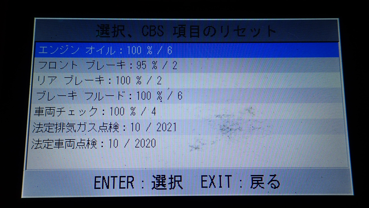 テスターにて故障コードの確認と、サービスのリセットを実施しています。