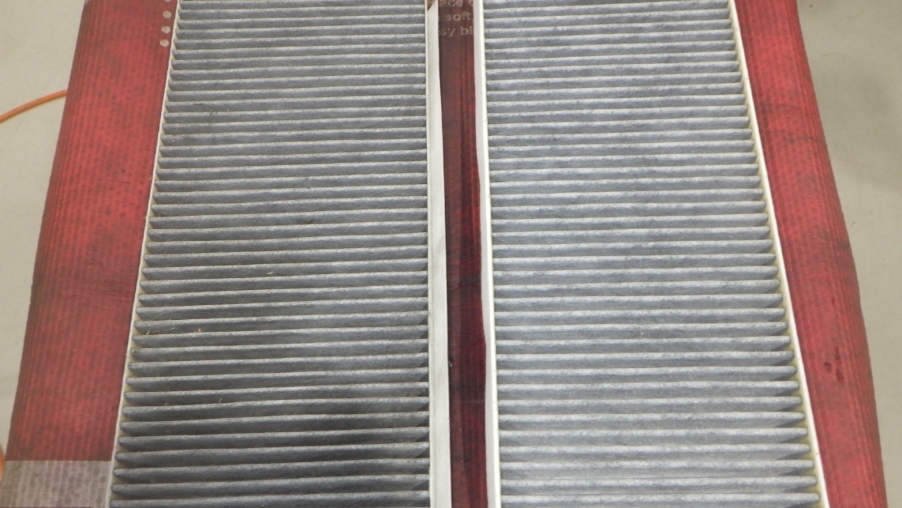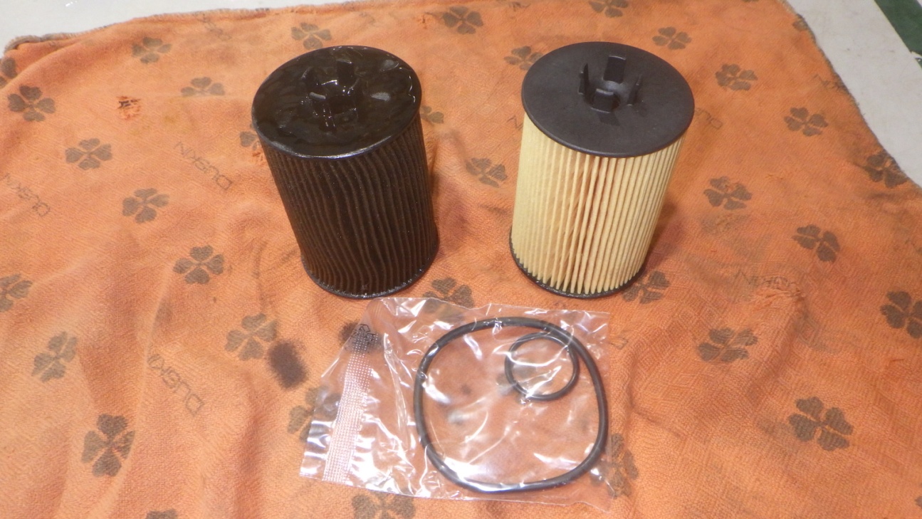 交換前、交換後のオイルフィルターです。オイルフィルターの点検も実施しています。
