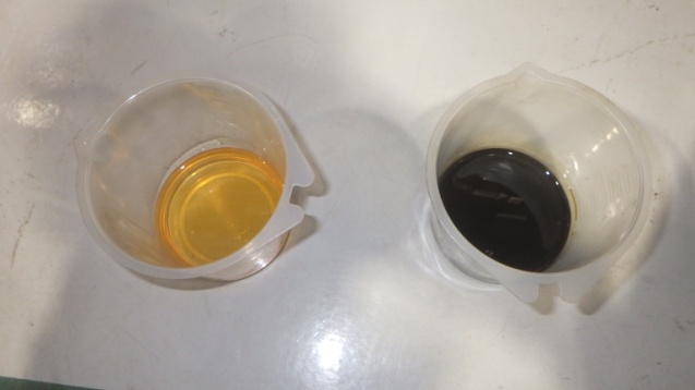 交換前、交換後のエンジンオイルです。オイル量の点検も実施しています。