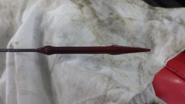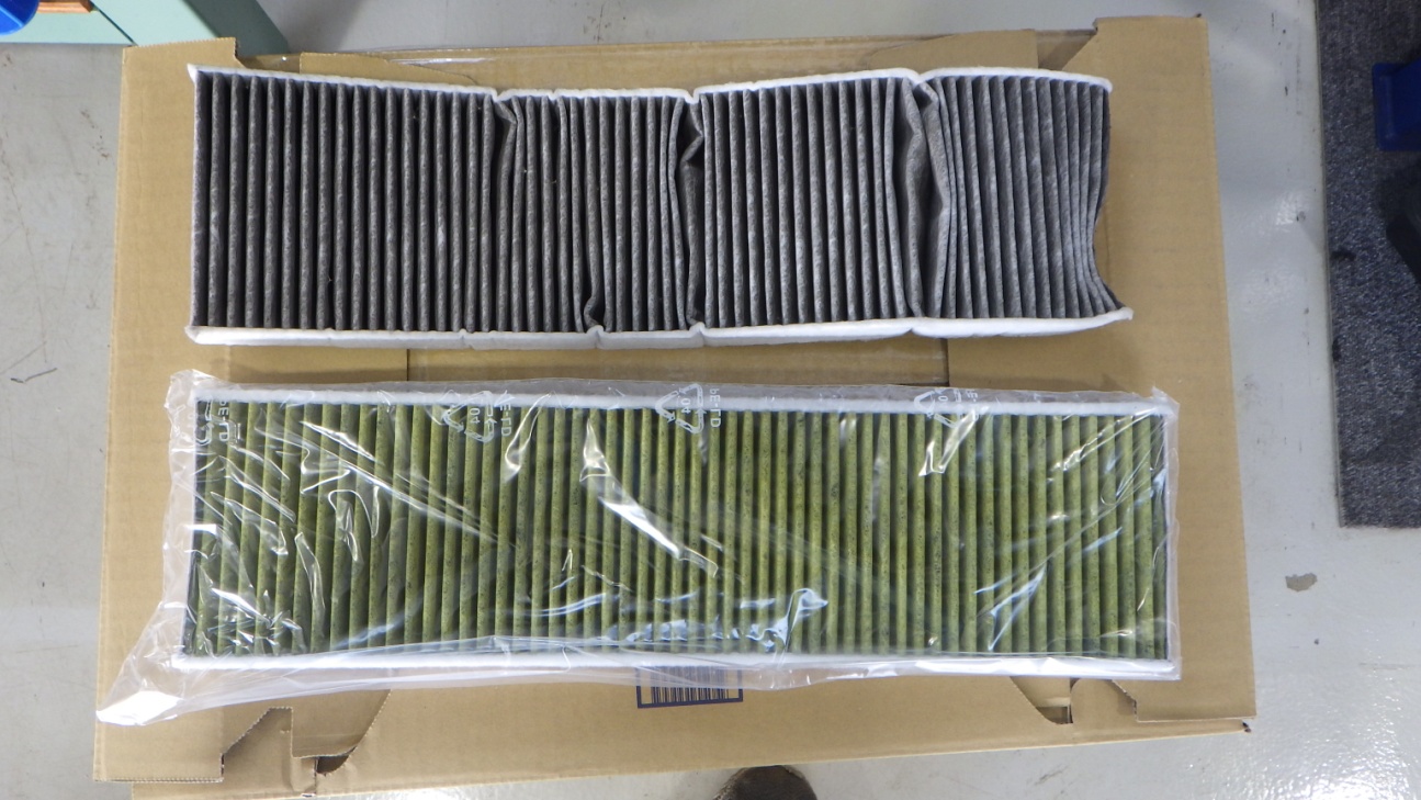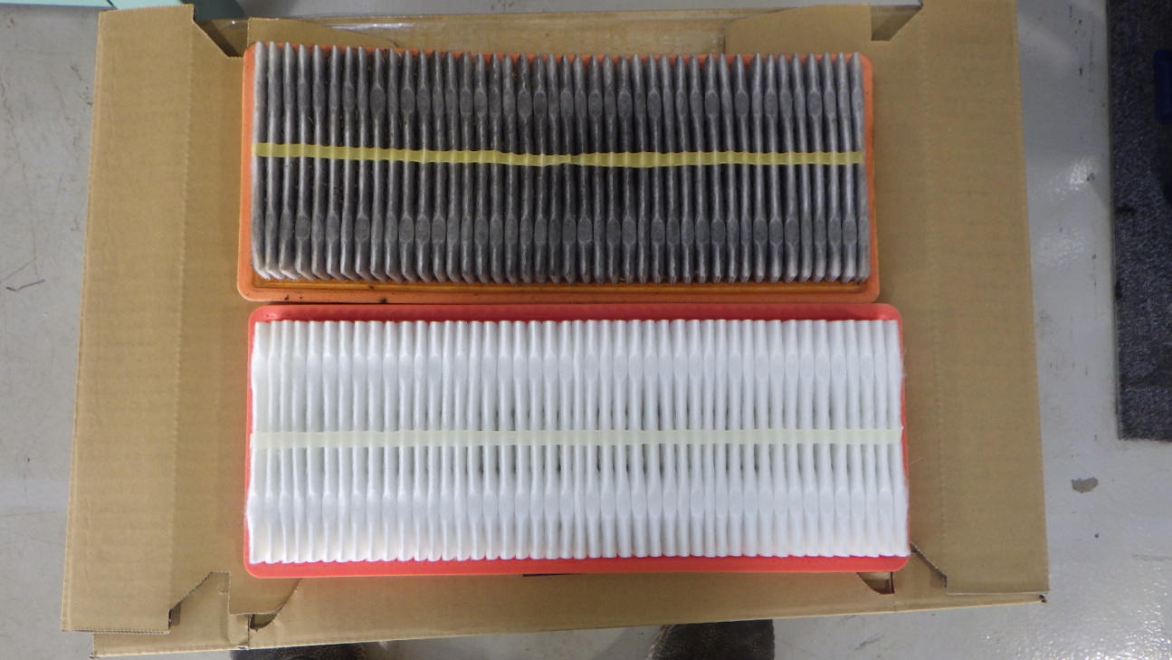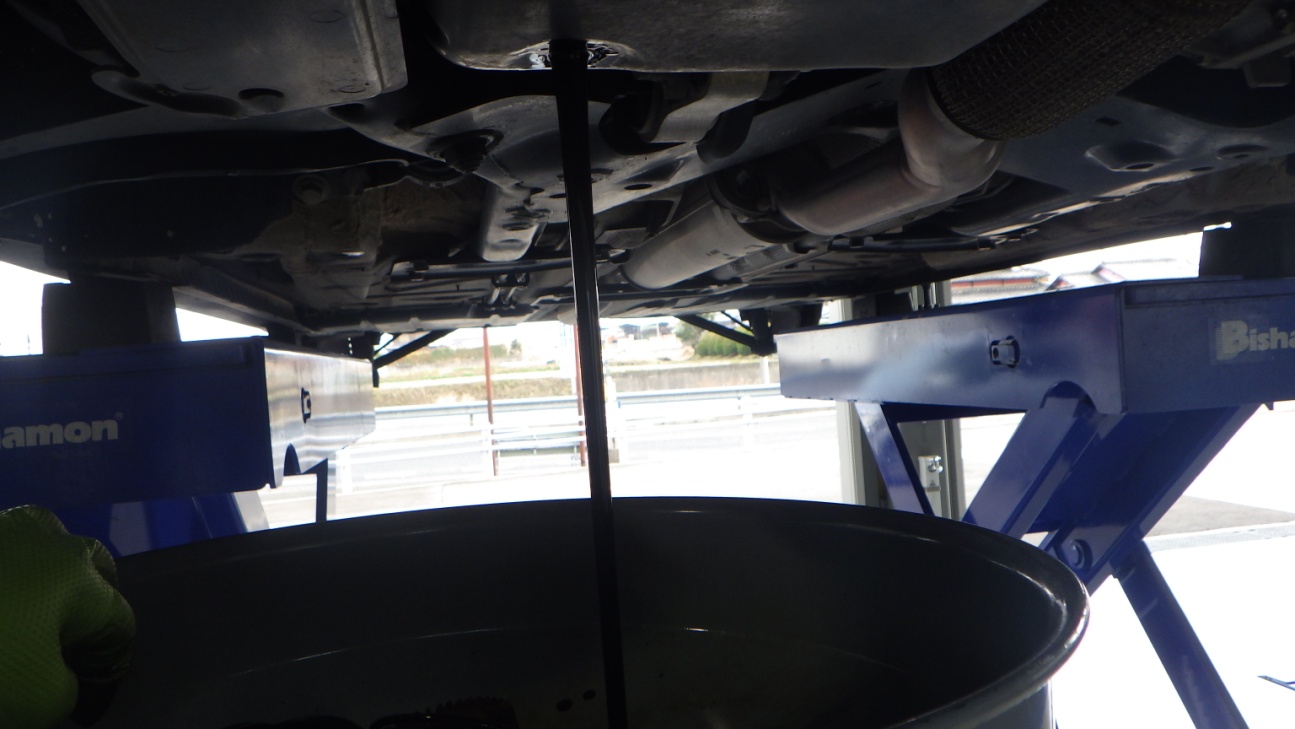 交換前、交換後のエンジンオイルです。交換後オイル量の点検も実施しています。