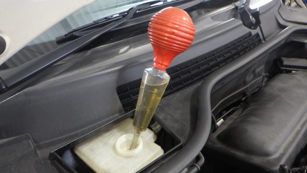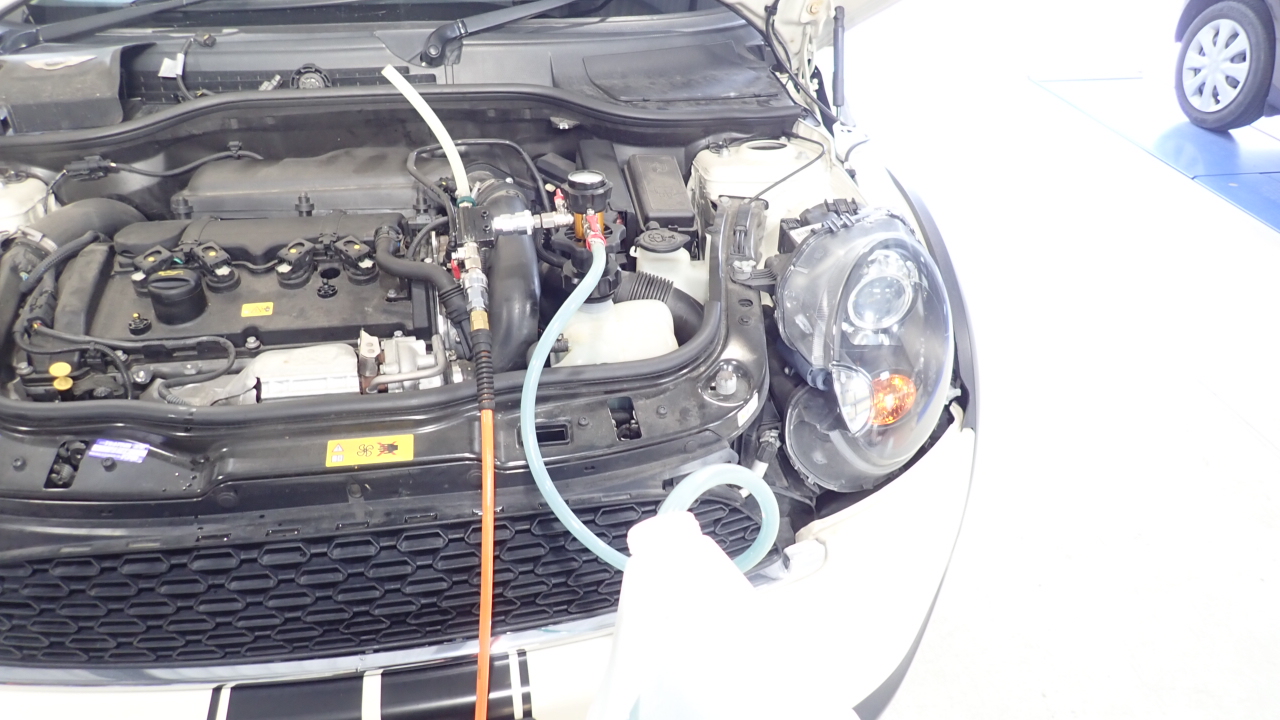 交換後、冷却系統を真空にし、クーラントを補充しています。