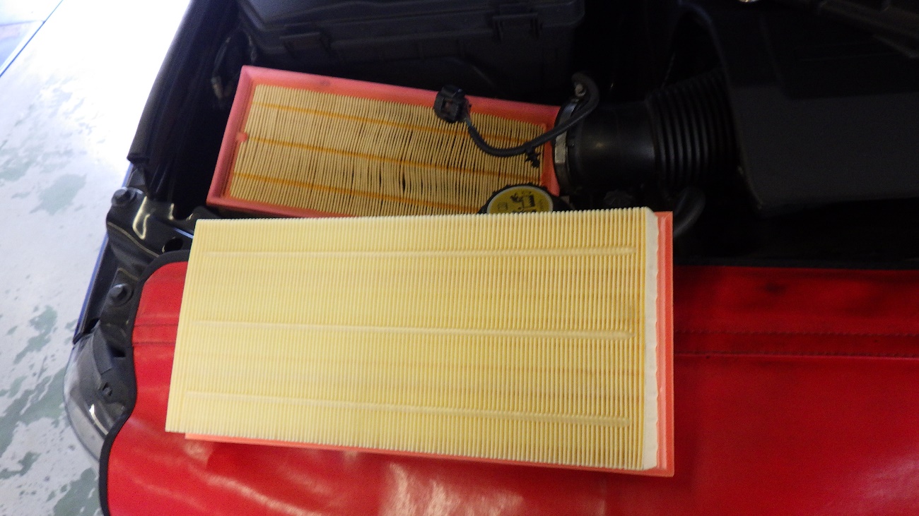 右側のエアクリーナーの交換作業様子です。