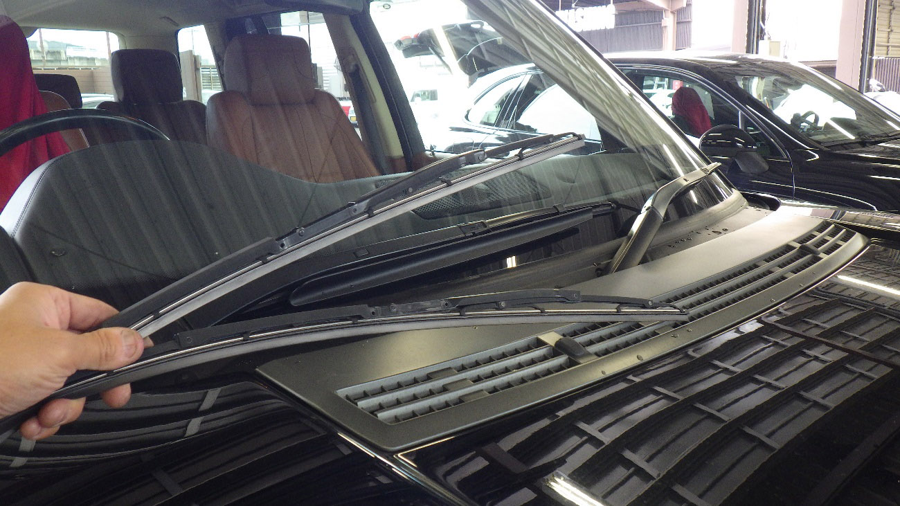 フロントワイパーブレードの交換作業様子です。