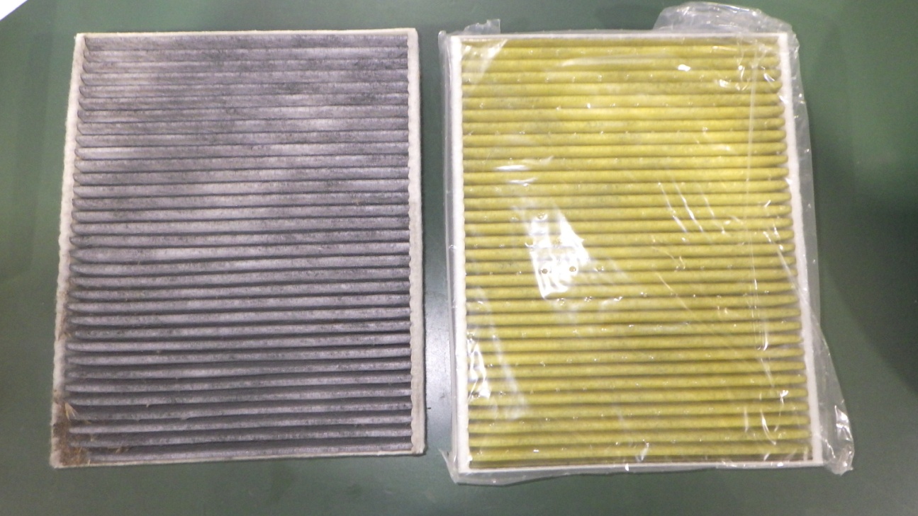 交換前、交換後のオイルフィルターです。オイルフィルター交換実施しています。