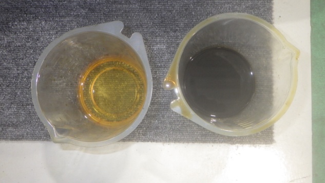 交換前、交換後のエンジンオイルです。オイル量の点検も実施しています。