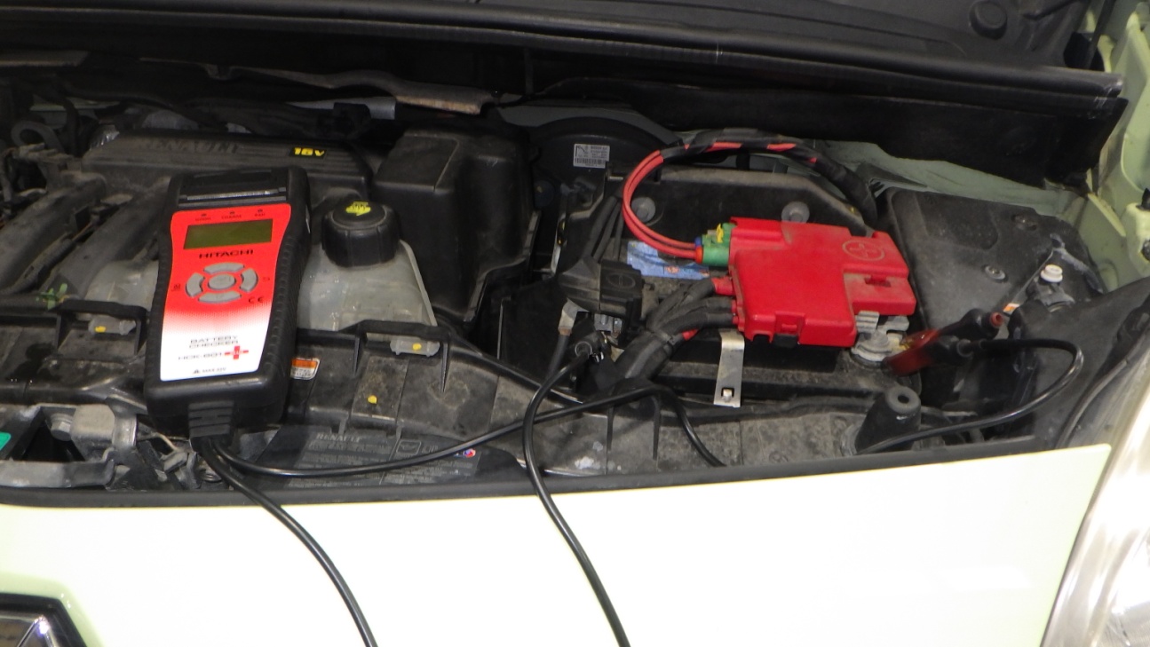 テスターにてバッテリーの点検を実施しています。
